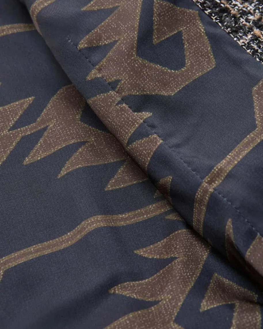 Jacke für Damen von Bazar Deluxe in Schwarz, Creme und Beige. Das Modellpräsentiert sich mit strukturiertem Bouclé-Material und verschiedenenKordelborten, während klassische Details das Modell gekonnt ergänzen – Einfemininer Statement-Look.