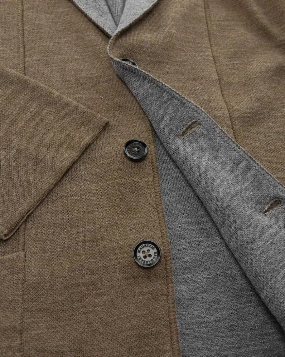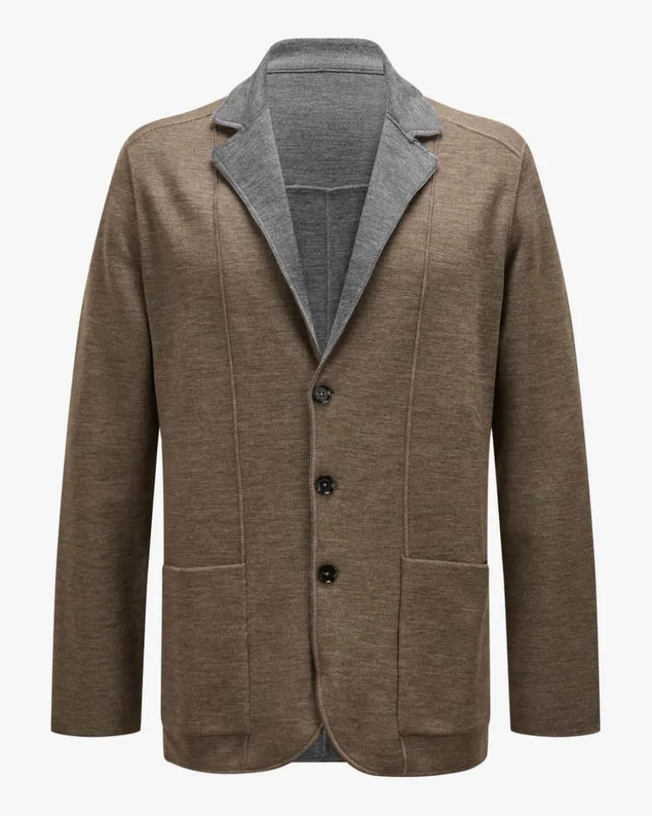 Jamaika Wende-Stricksakko für Herren von Maurizio Baldassari in Taupe und Grau.Dieses Modell mit Wendefunktion begeistert dank hochwertigemSchurwoll-Mix, der mit angenehmer Haptik überzeugt und gleichzeitig einenlegeren 2-in-1-Look kreiert.
