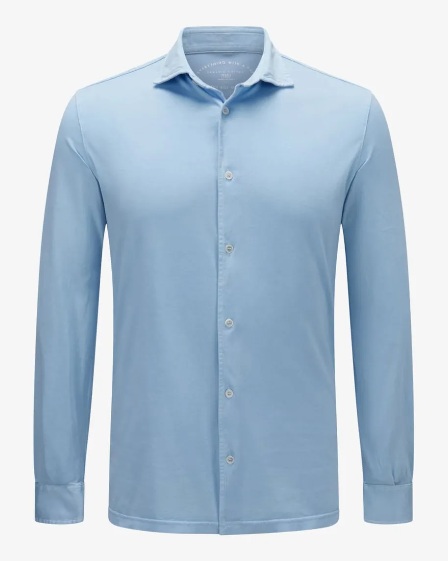Jason ML Jerseyhemd für Herren von Fedeli in Hellblau. Dank der markantenMerkmale eines Polo-Shirts erhält das Freizeit-Hemd einen sportlichen Charakter,welcher durch die angenehme Jersey-Qualität, die durchgehende Knopfleiste unddie langen Ärmel elegant ergänzt wird.