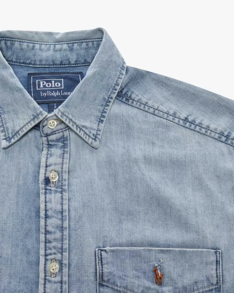 Jeansbluse für Damen von Polo Ralph Lauren in Hellblau. Das Modell aushochwertiger Baumwoll-Qualität überzeugt mit lässiger Schnittform undklassischen Details, während die Waschung den typischen Jeans-Charakterhervorhebt.