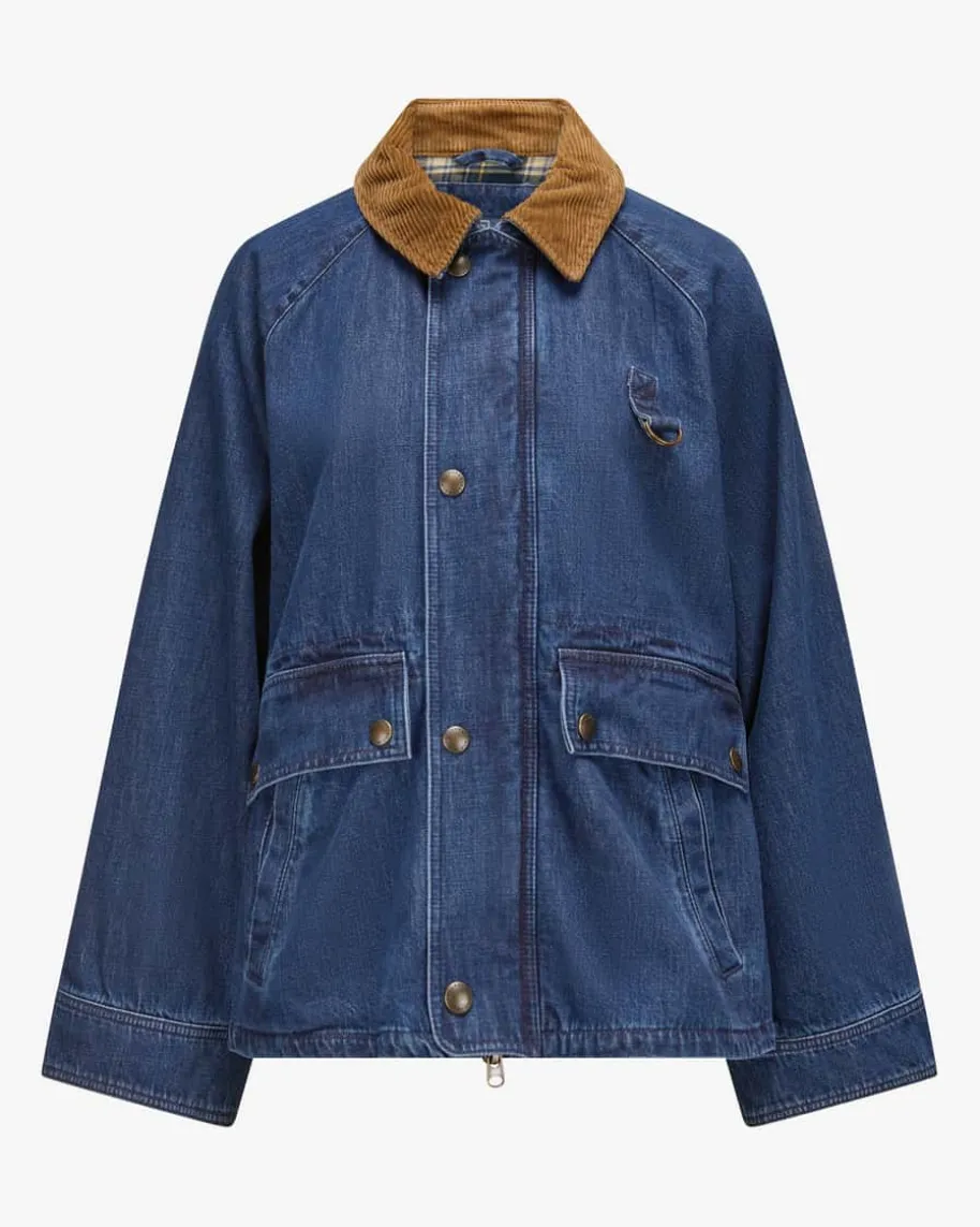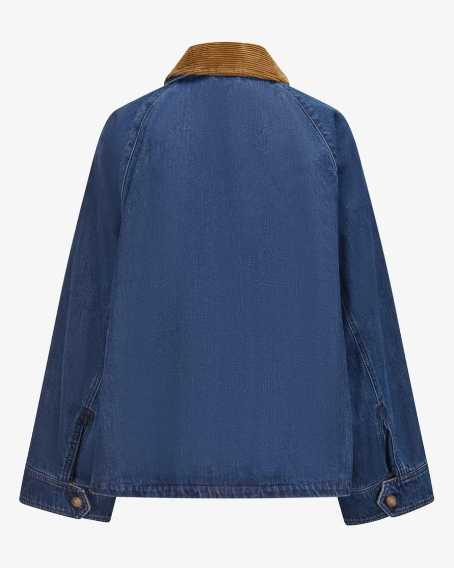 Jeansjacke für Damen von Polo Ralph Lauren in Blau und Hellbraun. Eine Ikone desamerikanischen Lifestyles – sportlich, preppy, klassisch. Auch dieses Modellüberzeugt mit legerer Silhouette im Workwear-Stil und angenehmer Baumwoll-Denim-Qualität, während der Hemdkragen mit Cord-Besatz das Design unterstreicht.