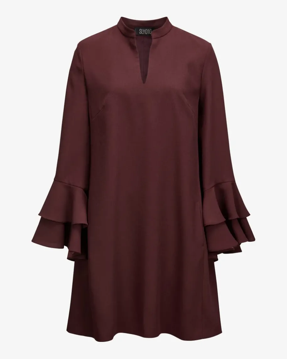 Jelena Kleid für Damen von SLY010 in Bordeaux. Das Modell in Crepé-Aufmachungüberzeugt mit angenehmen Tragemomenten, während die besonderen Ärmel einenfemininen Look kreieren.