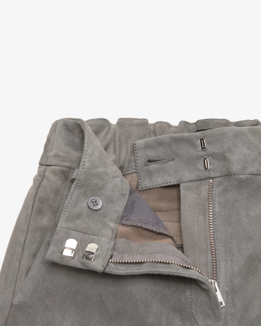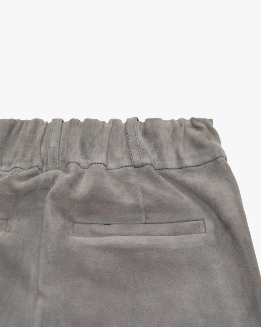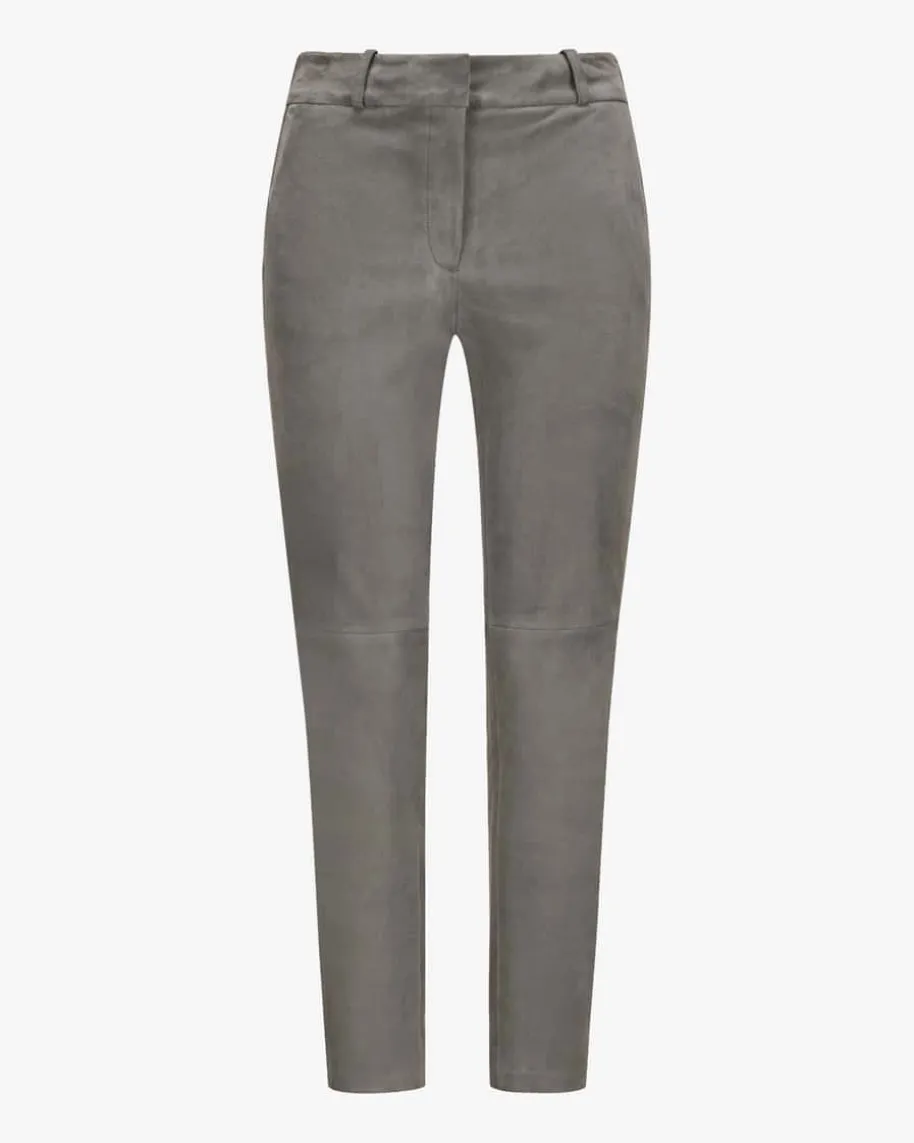 Jen 7/8-Lederhose für Damen von ARMA in Stein. Aus edlem Lammvelours bestichtdieses verkürzte Modell sowohl optisch als auch haptisch, während die dezentenKnieabnäher der verkürzten Hose einen modernen Touch verleihen.