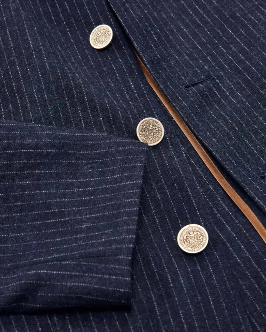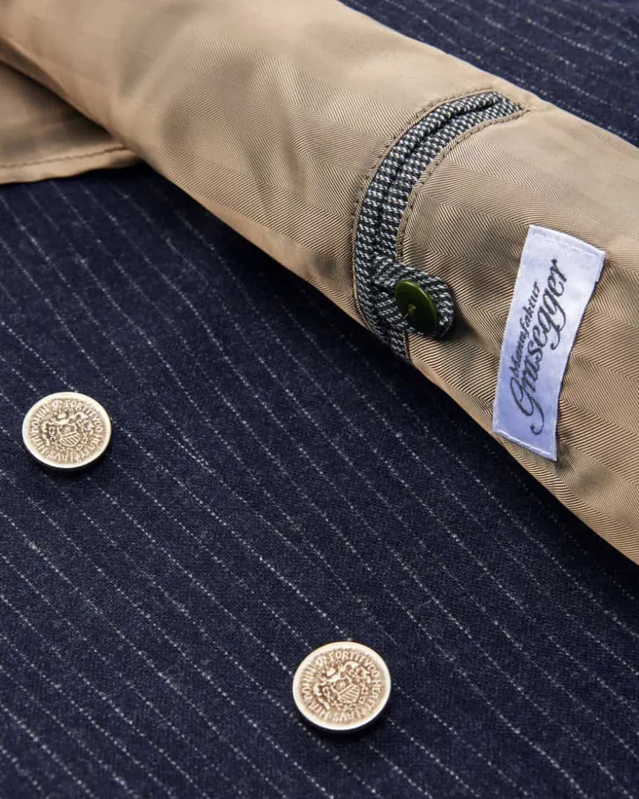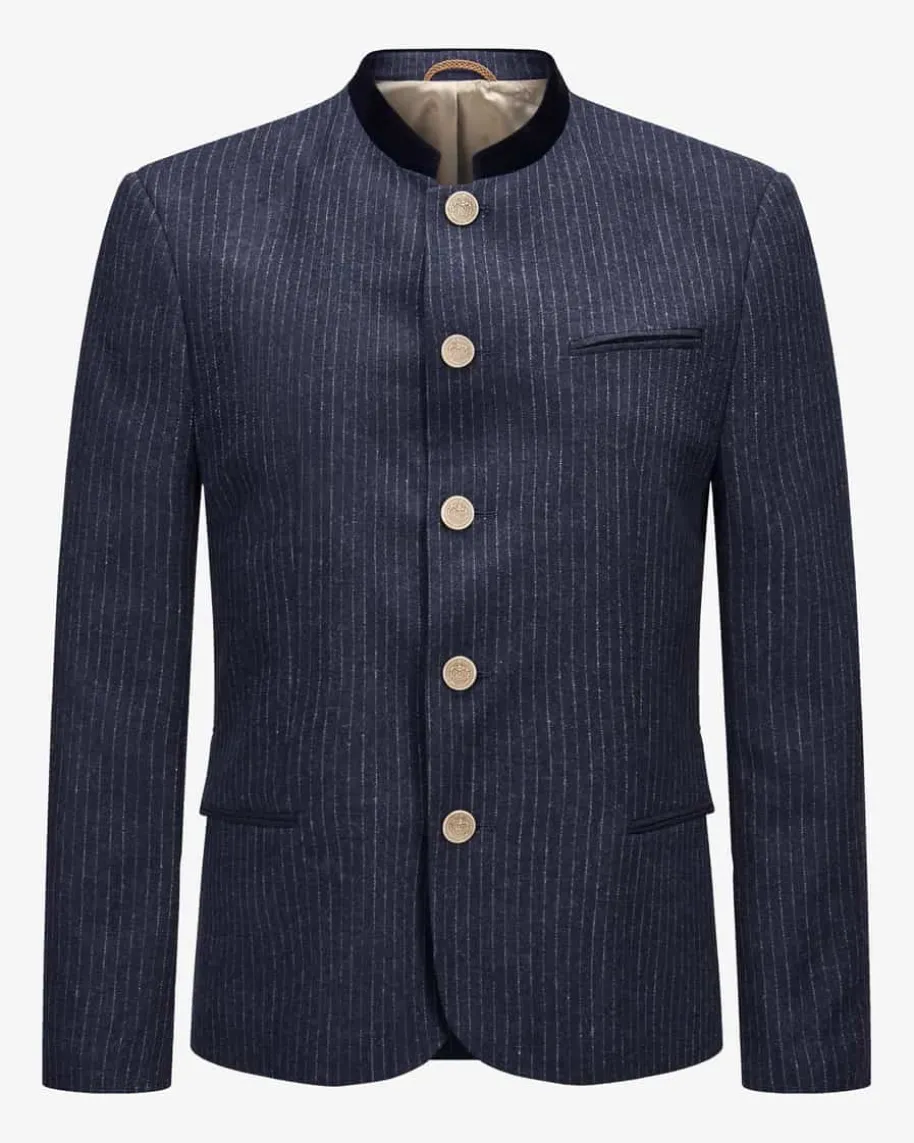 Jetztendorf Trachten-Sakko für Herren von Grasegger Manufaktur in Navy und Weiß.Die Marke steht für exklusive Trachtenmode, gefertigt mit Sorgfalt, Handwerk undStil. Auch dieses Modell in hochwertiger Merinowolle überzeugt mit leichtemGriff, während das Nadelstreifen-Dessin und die Wappen-Knöpfe einentraditionellen Begleiter kreieren.