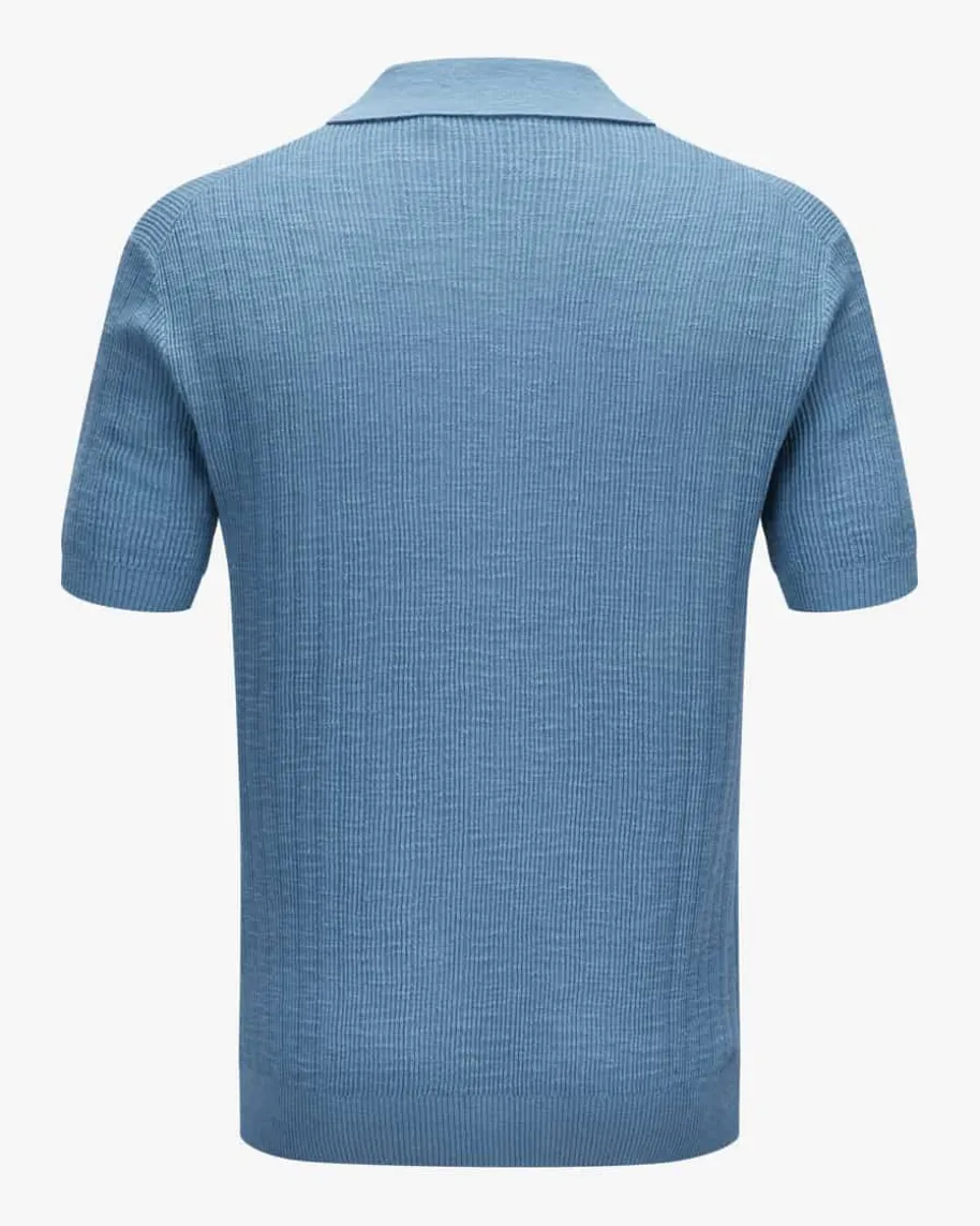 Joaquim Strick-Poloshirt für Herren von Frescobol Carioca in Blaugrau. DiesesModell präsentiert sich mit klassischem Design, während die weiche Strick-Qualität sowohl haptisch als auch optisch überzeugt.