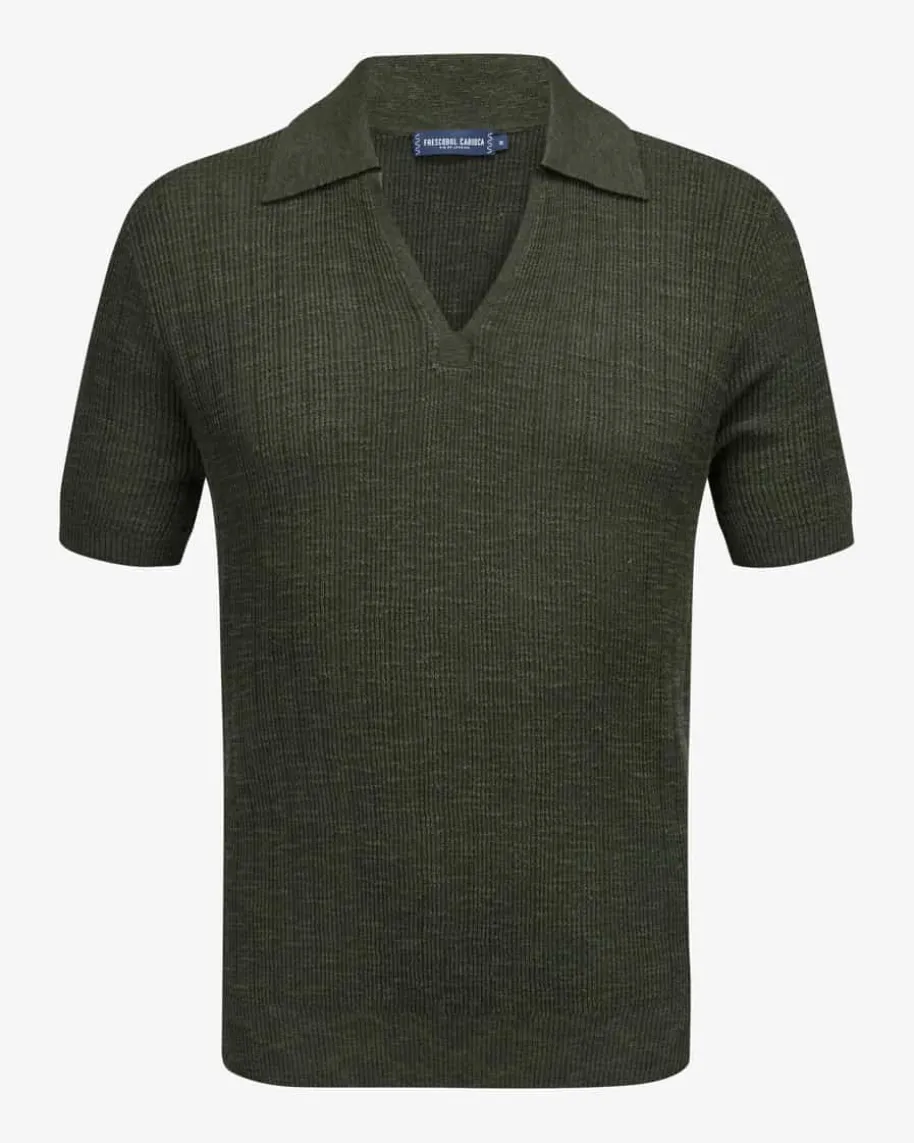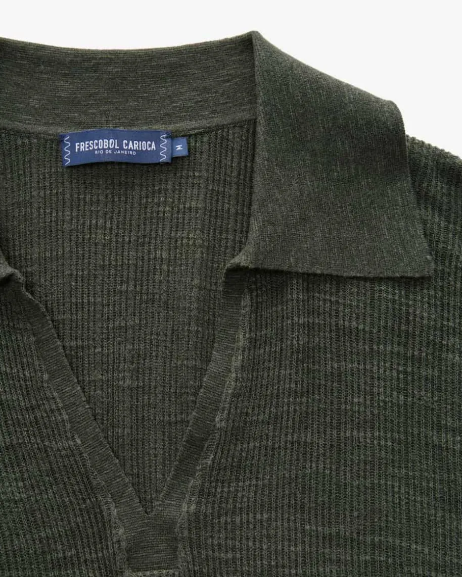 Joaquim Strick-Poloshirt für Herren von Frescobol Carioca in Dunkelgrün. DiesesModell präsentiert sich mit klassischem Design, während die weiche Strick-Qualität sowohl haptisch als auch optisch überzeugt.