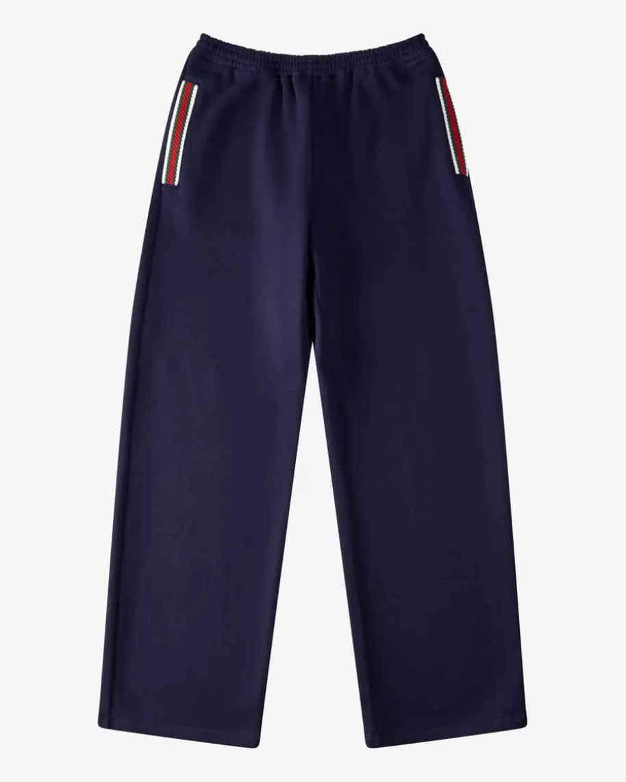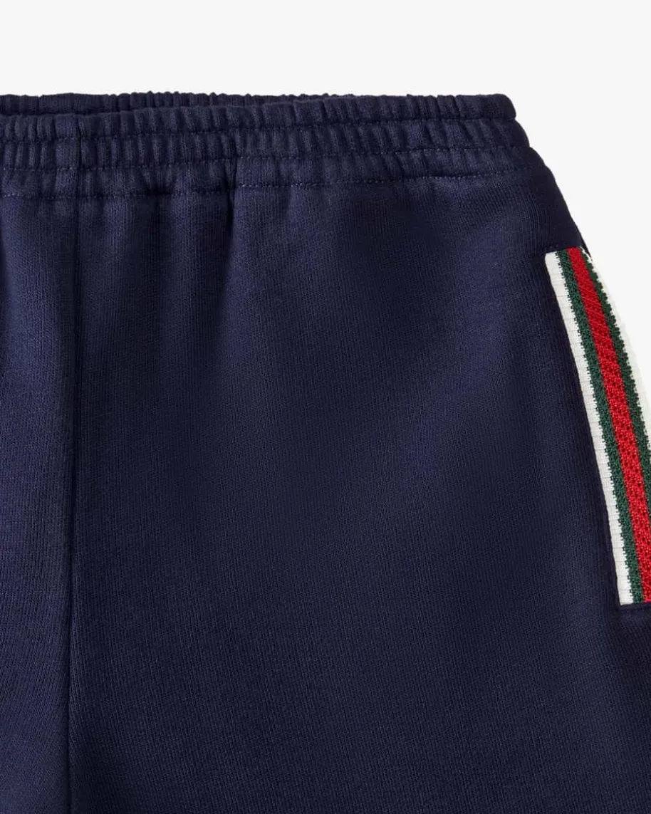 Jogginghose für Kinder von Gucci Kids in Navy, Weiß und Rot. Das Modellpräsentiert sich dank der legeren Aufmachung mit elastischem Bund undkontrastfarbenen Streifen als sportiver Alltags-Favorit, der durch die dasangenehme Sweat-Material harmonisch abgerundet wird. Das Modell kann mit dempassenden Hoodie als Allover-Look getragen werden.
