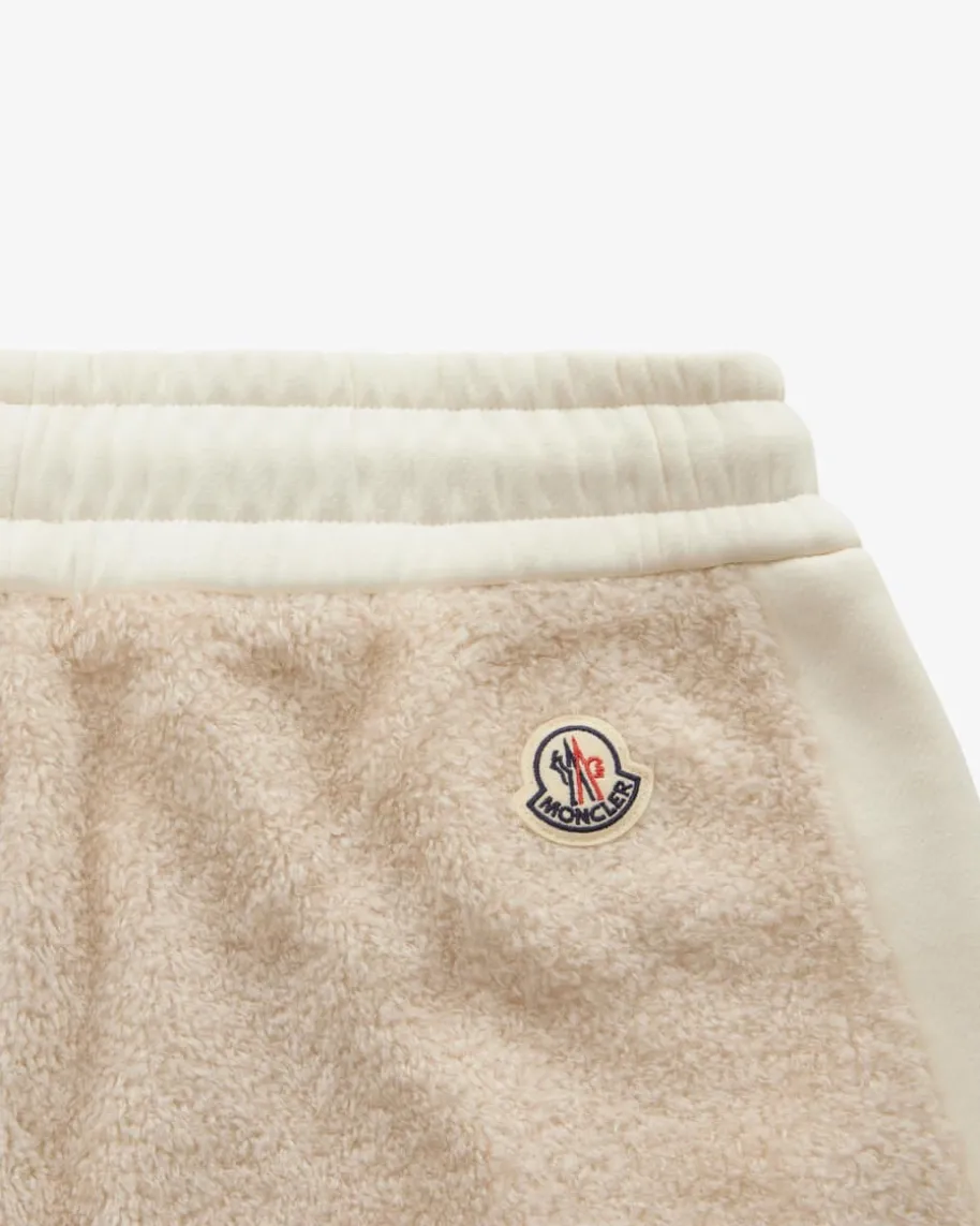 Joggpants für Damen von Moncler in Creme. Das Modell begeistert mit weichemTeddyfell und einem elastischen Bund, der für höchsten Tragekomfort sorgt.Seitliche Streifen und sportive Details verleihen dem legeren Look den letztenSchliff.