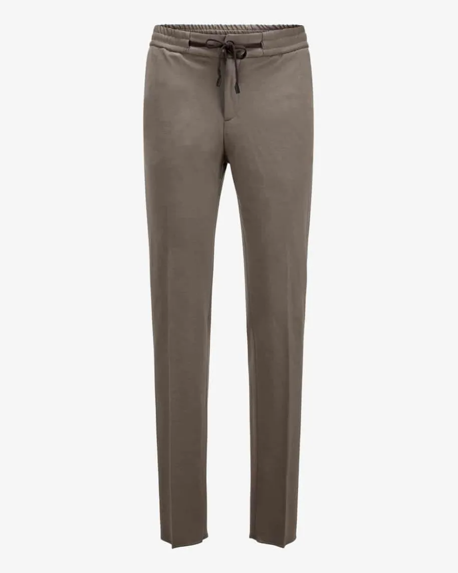 Schurwoll-Joggpants für Herren von Maurizio Baldassari in Taupe. Das Modellbesticht durch die weiche Schurwoll-Qualität mit Tunnelzug als angenehmerBegleiter, welcher durch die Bügelfalten und klassische Details einen stilvollenTouch erhalten.