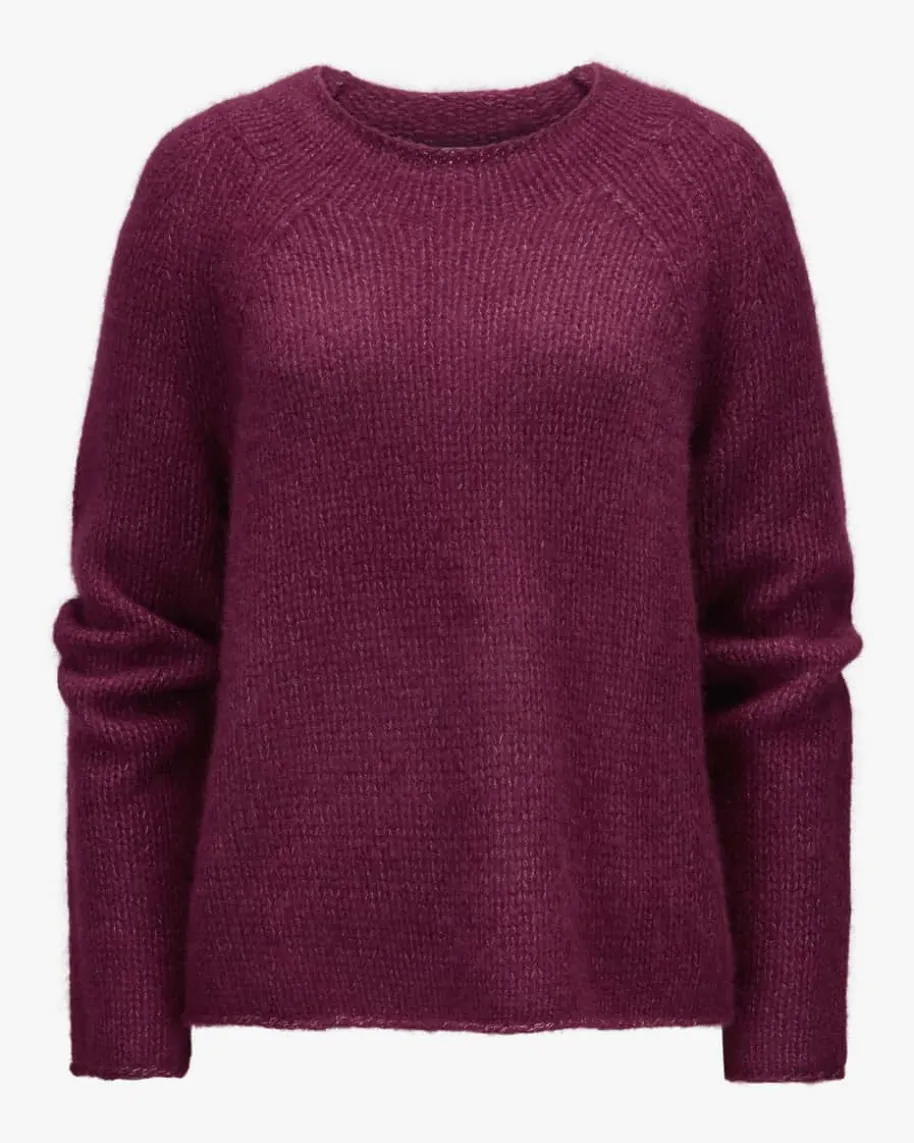 Kari Nos Cashmere-Seiden-Pullover für Damen von Lu Ren in Burgundy. DiesesModell präsentiert sich in weicher Cashmere-Seiden-Qualität, während dasschlichte Dessin einen zeitlosen Strick-Begleiter kreiert.