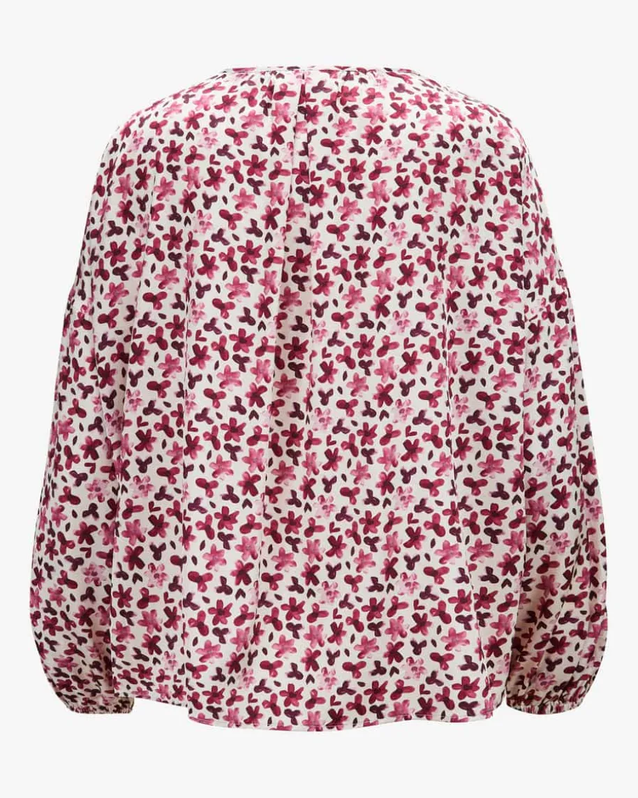 Katta Seidenbluse für Damen von Hemisphere in Creme und Bordeaux. Das weiteModell aus elastischem Seiden-Mix besticht mit optimalen Tragekomfort, währenddas florale Allover-Dessin ein feminines Gesamtbild kreiert.
