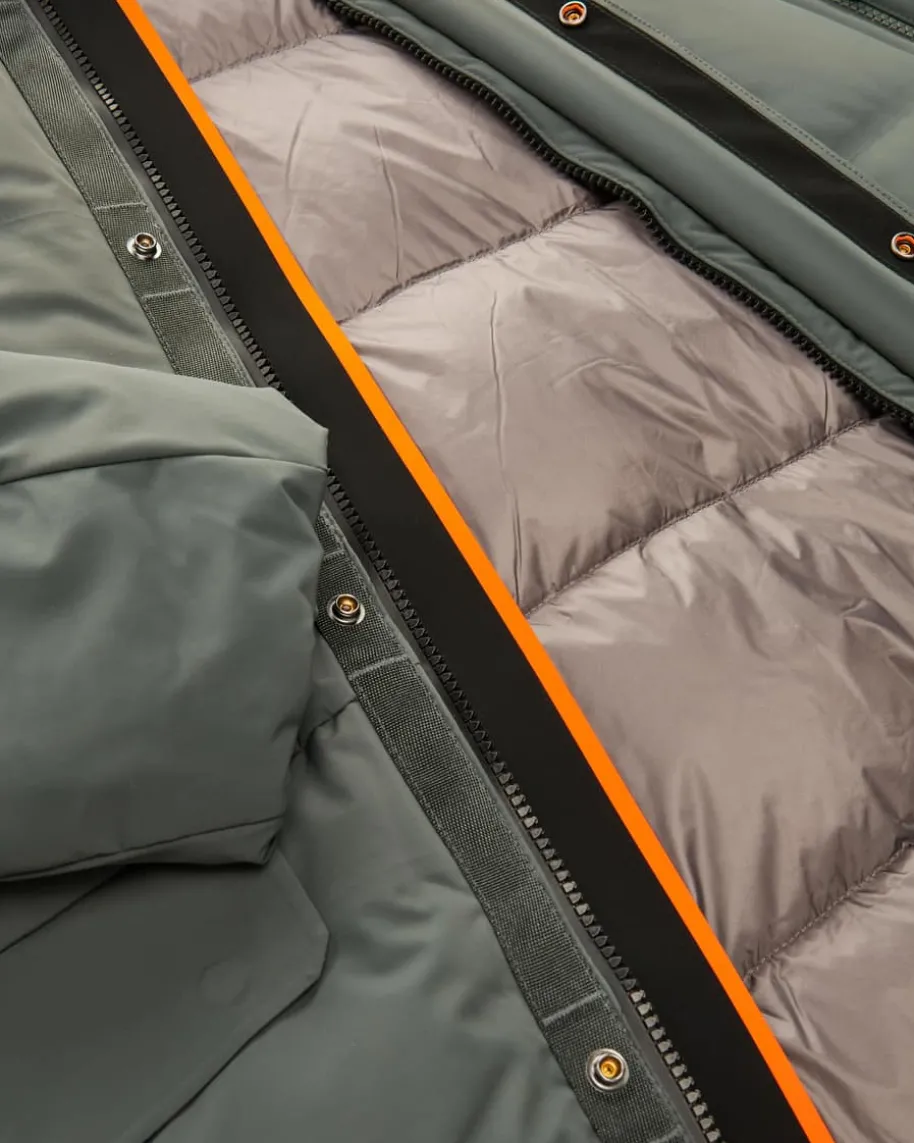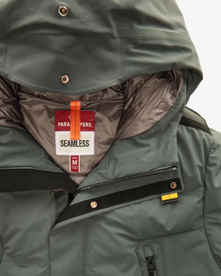 Kazu Daunenjacke für Herren von Parajumpers in Graugrün. Das Modell aus derSeamless Serie punktet mit minimalistischem Look und wasserabweisender Qualitätaus 25% recycelten Materialien. Die praktischen Elemente, wie die zahlreichenTaschen untermalen den sportiven Gesamt-Look, während die wärmende Daunen-Feder-Füllung einen perfekten Begleiter für kalte Tage erschafft.
