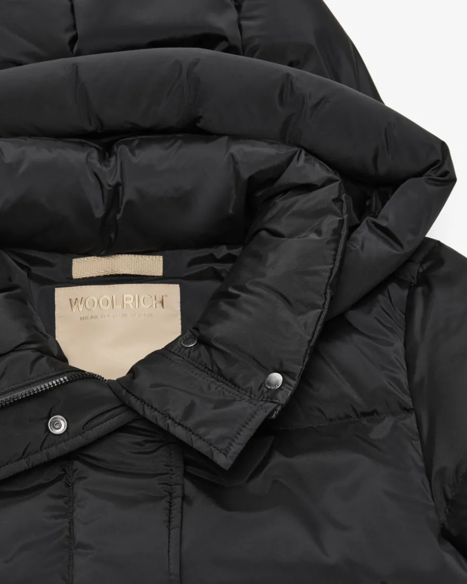 Kelly Daunenmantel für Damen von Woolrich in Schwarz. 1830 von John Rich inPennsylvania gegründet, erfreute sich das Label damals schon großer Beliebtheit– vor allem im Outdoor-Bereich. Auch dieses Modell begeistert dank zahlreicherFunktionen sowie der warmen Daunen-Feder-Füllung als hochwertigerWinterbegleiter, während die klassische Steppung sowie die matt changierendeOptik das Gesamtbild harmonisch abrunden.