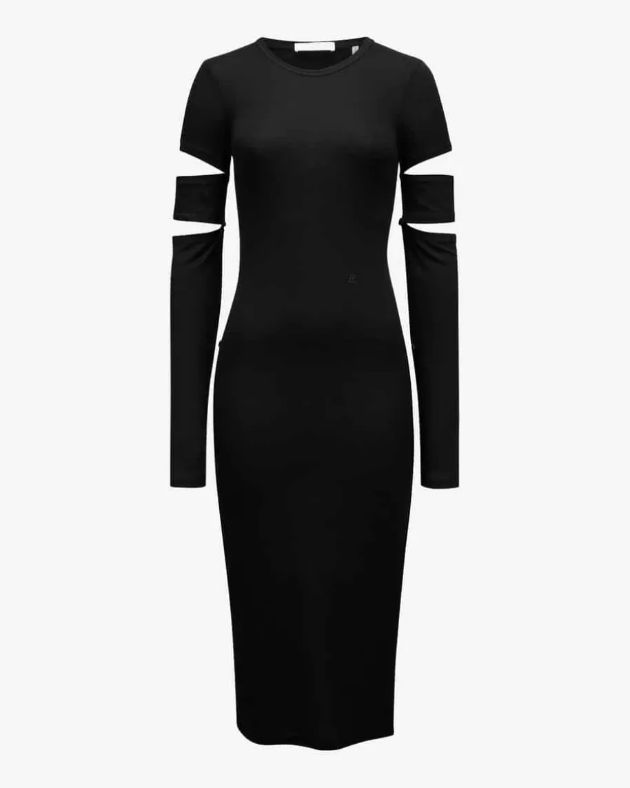 Kleid für Damen von Helmut Lang in Schwarz. Das leichte Modell punktet mitweichem Pima-Baumwolle-Modal-Mix in elastischer Jersey-Verarbeitung, die fürangenehmen Tragekomfort sorgt, während die schmale Passform einen modischen Lookkreiert. Die variabel verstellbare Ärmel- und Rocklänge sorgen für vielfältigeStyling-Möglichkeiten.