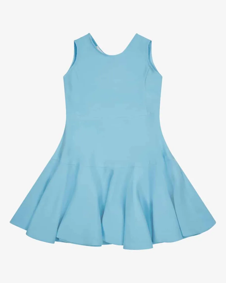 Kleid für Mädchen von Elsy in Türkis. Das Modell präsentiert sich mit weitausgestelltem Rock, der eine schwingende Silhouette garantiert. Die elastischeMaterial-Verarbeitung sorgt zudem für angenehmen Tragekomfort und rundet deneleganten Style harmonisch ab.