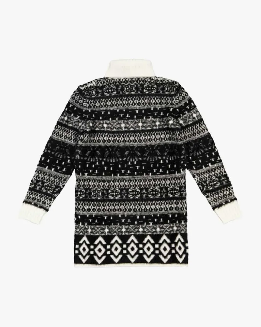 Kleid für Mädchen von Moncler Enfant in Schwarz und Creme. Während das Strick-Design einen modischen Blickfang kreiert, setzt der strukturierte Woll-Mixhaptische wie auch optische Highlights. Zugleich vollendet der Rollkragen dasGesamtbild harmonisch.