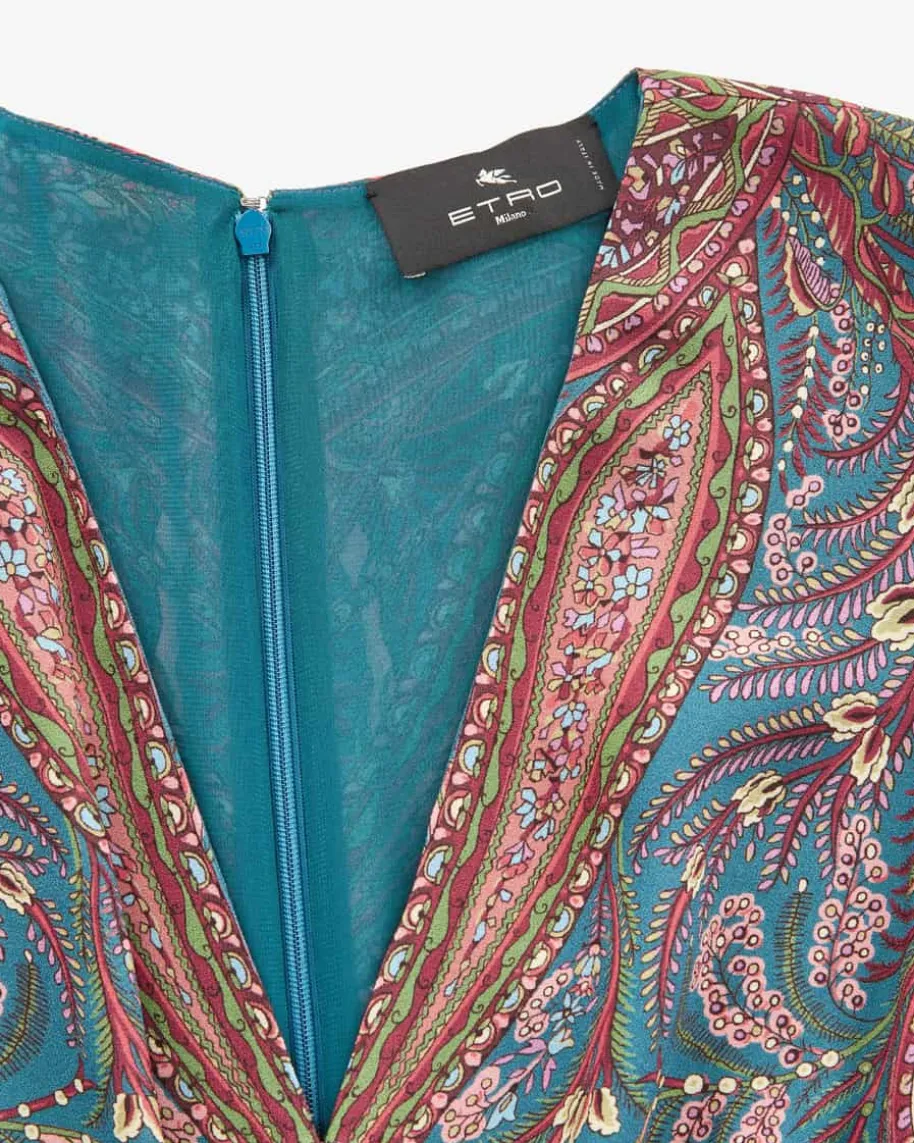 Kleid für Damen von Etro in Türkis, Dunkelrot und Grün. Das Modell präsentiertsich in fließender Material-Qualität, die sowohl haptisch als auch optischüberzeugt. Zudem betont die drapierten Raffungen an der Taille die feminine Notegekonnt und kreiert zusammen mit dem floralen Muster einen stilvollen Look mitlabeltypischem Touch.