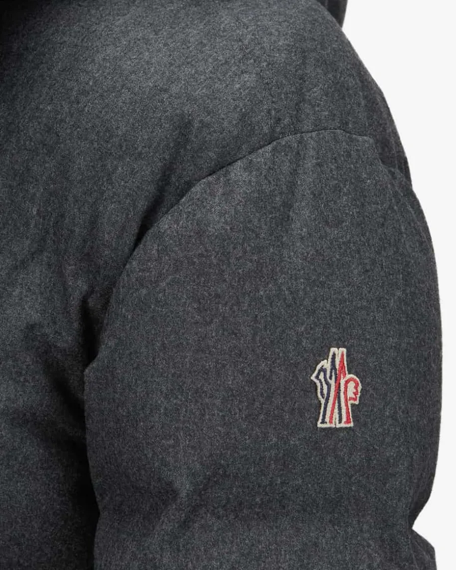 Krun Daunenjacke für Herren von Moncler Grenoble in Dunkelgrau. Das Modellpunktetmit hochwertiger melierter Schurwolle, die für angenehmen Tragekomfort sorgt.Das Steppfutter mit voluminöser Daunen-Feder-Füllung sorgt zudem für wärmendenKomfort. Zahlreiche sportive Details und die wasserabweisende Ausrüstung rundenden Look aus der Performance & Style Kollektion gekonnt ab.