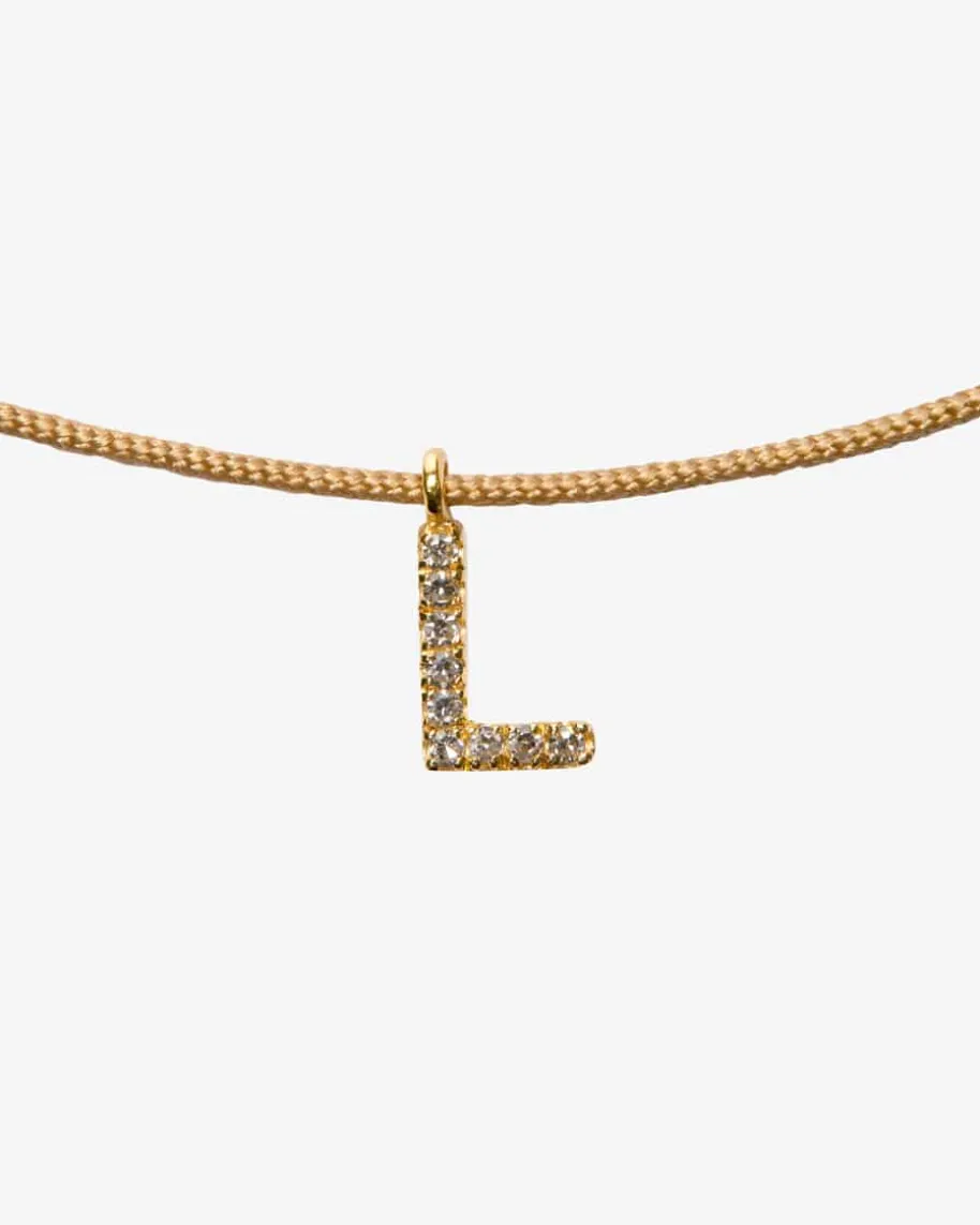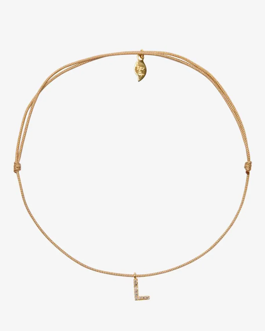 L-Glücksbändchen für Damen von Leaf in Beige und Gold. Das filigraneSchmuckstück besticht dank des diamantenbesetzten Anhängers aus Gold alsbesonderes Highlight, das sich perfekt für modische Lagen-Looks eignet.