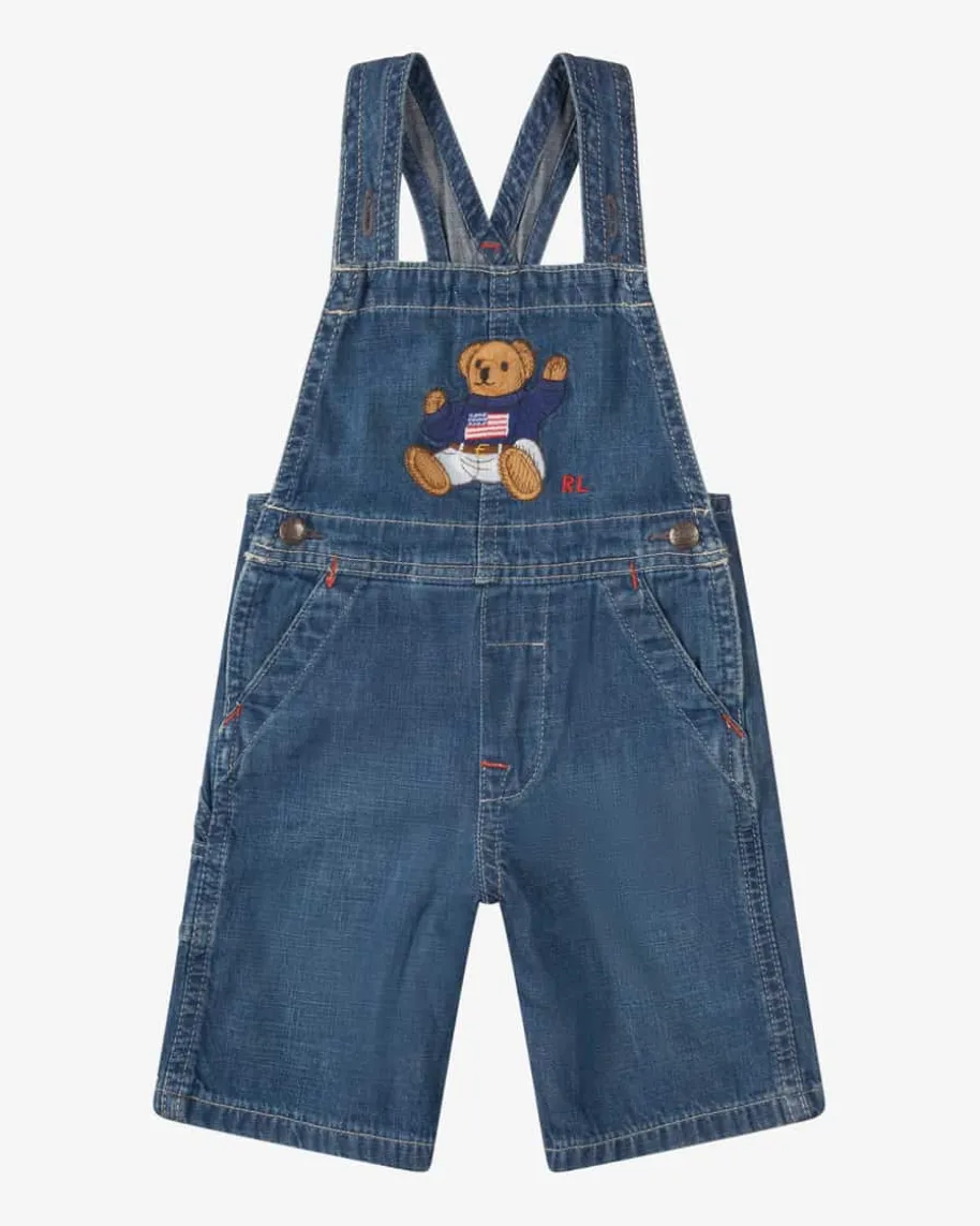 Latzhose für Babys von Polo Ralph Lauren in Dunkelblau. Das zeitlose Denim-Design, klassische Details und die labeltypische Bären-Stickerei schaffen einenniedlichen Favoriten mit dezenter Waschung und zuckersüßer Latzhosen-Aufmachung.