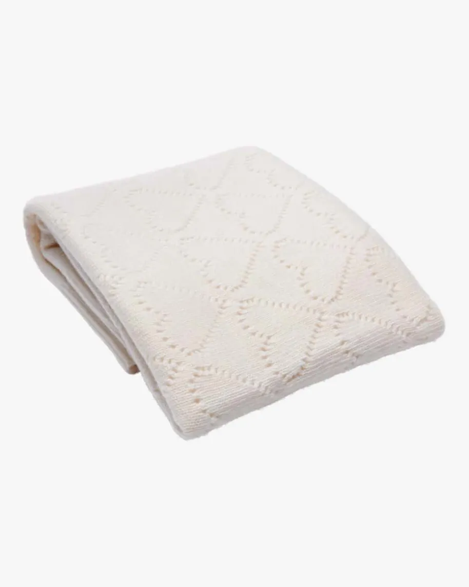 Lea Cashmere-Decke für Babys von Papa Lobster in Creme. Der perfekte täglicheBegleiter für Ihre Kleinen – Dieses vielseitig einsetzbare Modell überzeugt dankbesonders weicher Cashmere-Qualität in stilvollem Strick-Design, das durchniedliche Lochstickereien in Herz-Form ergänzt wird.