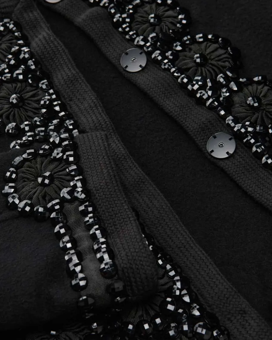 Leak25 Jacke aus Wolle für Damen von Parosh in Schwarz. Die Marke steht fürverspielte Designs mit Vintage-Flair – farbenfrohe Prints, Glitzer und Retro-Vibes made in Italy. Das Modell in modischer Aufmachung punktet sowohl mithaptischen als auch optischen Highlights dank der Verarbeitung aus weicher Wolleund den handbestickten Schmucksteinen, die einen Hingucker für edle Lookskreiert.