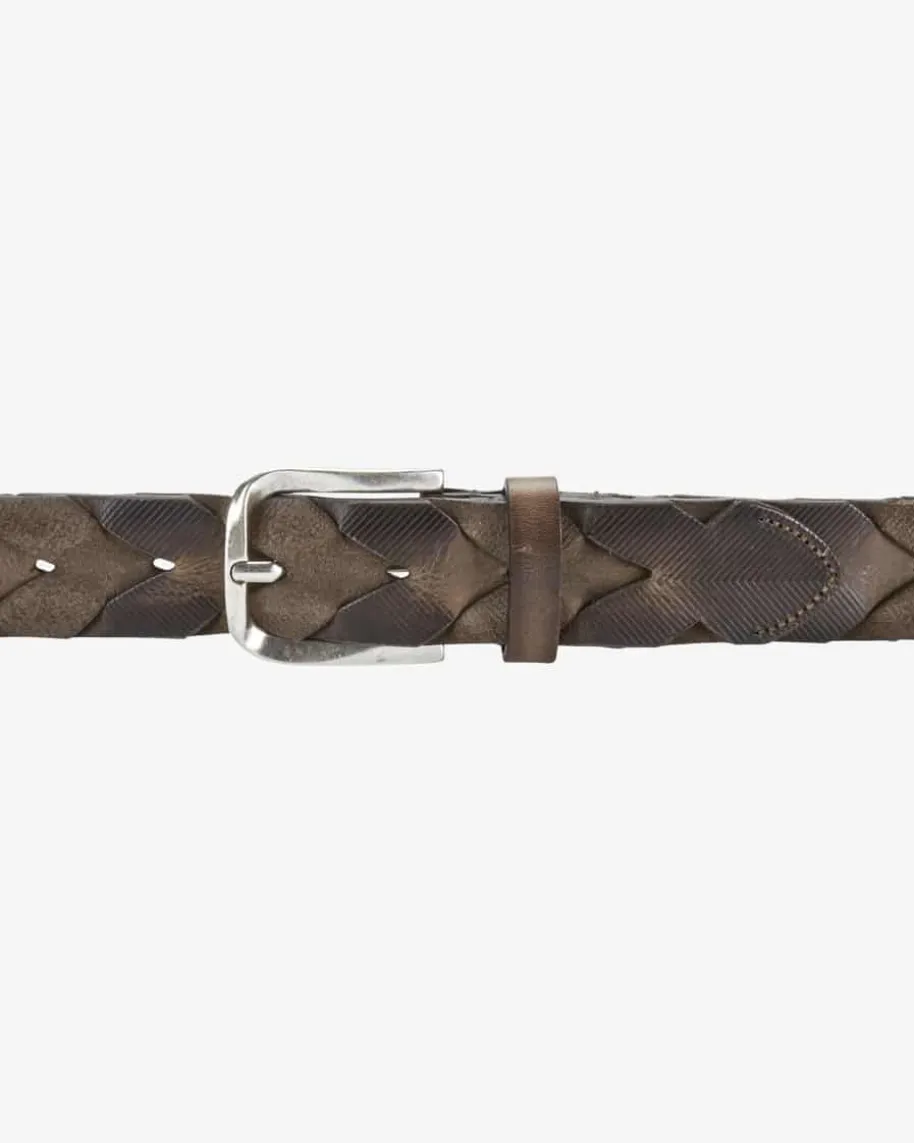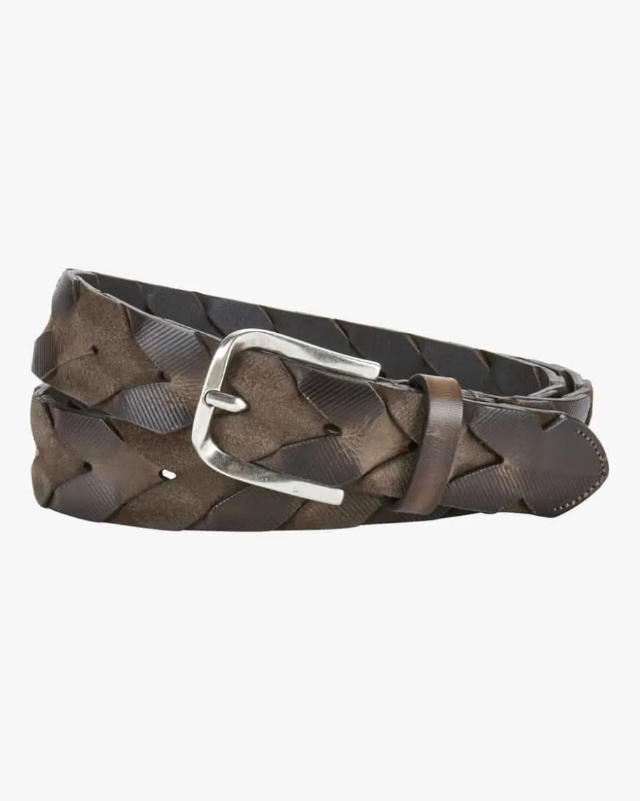 Ledergürtel für Herren von Veneta Cinture in Dunkelbraun. Das Modell, gefertigtaus geprägtem Leder, präsentiert sich dank der markanten Dornschließe inmaskuliner Aufmachung, während die raffinierte Flecht-Optik modische Akzentesetzt.