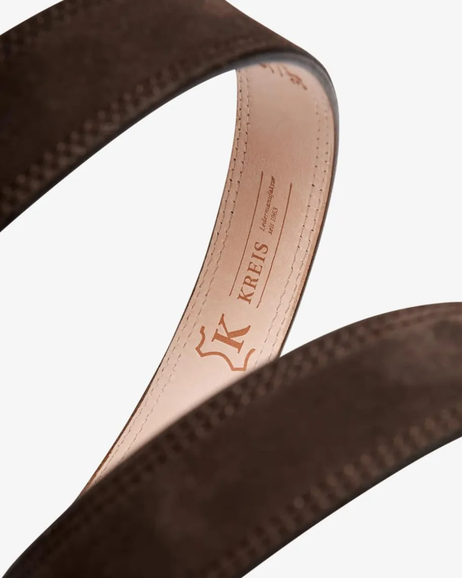 Ledergürtel für Herren von Kreis in Dunkelbraun. Das Modell ist der perfekteBegleiter für stilvolle Looks. Der Gürtel überzeugt mit hochwertigemVeloursleder und klassischem Design, während die Metallkappe einen modernenWestern-Touch verleiht.
