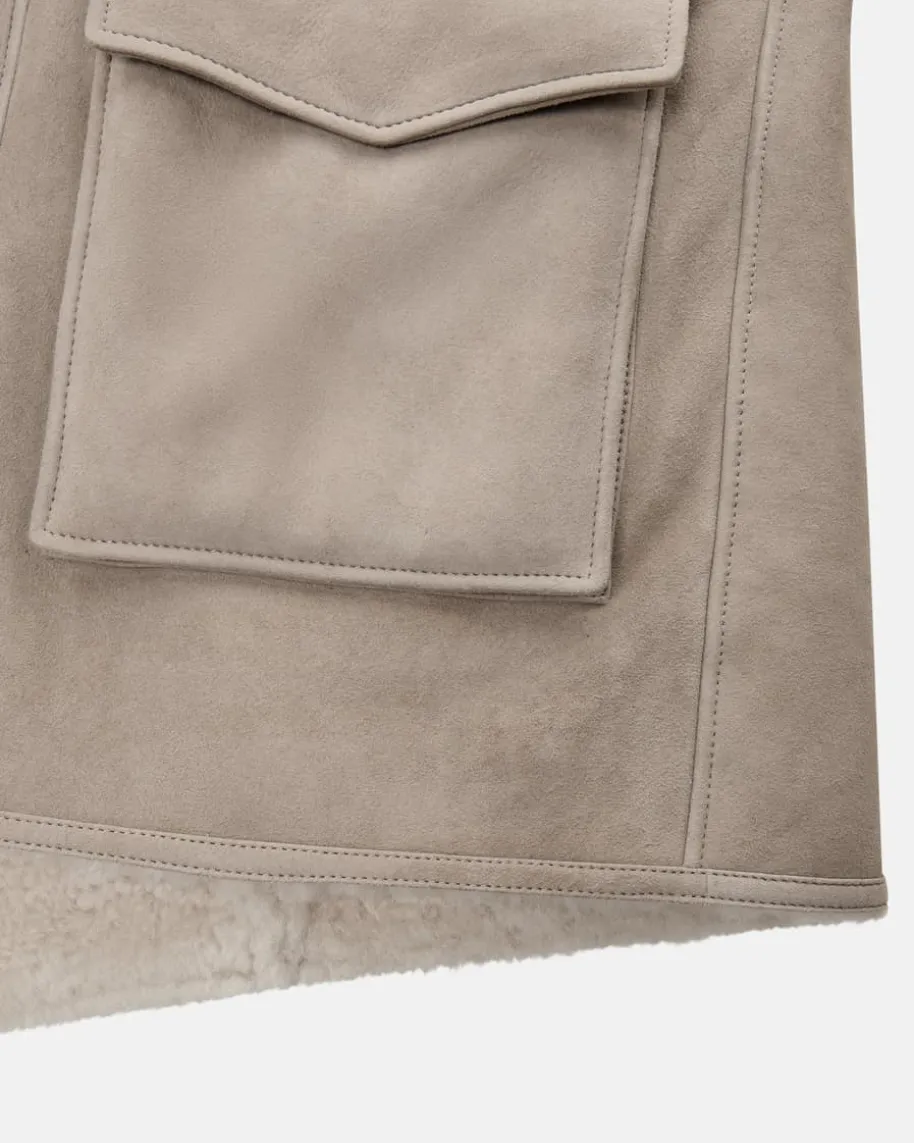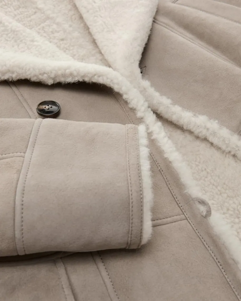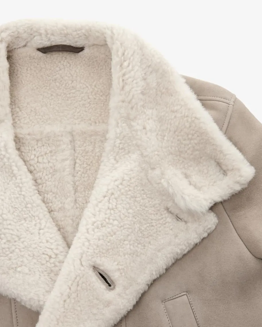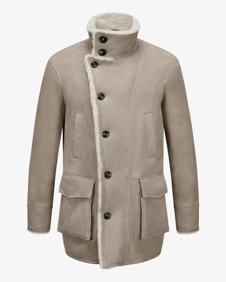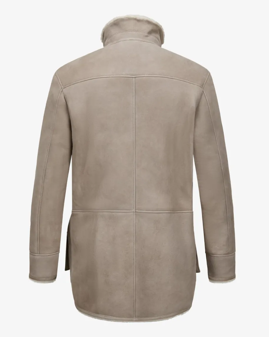 Lederjacke für Herren von Manzoni 24 in Taupe und Creme. Das kuschelige Modellzeichnet sich durch die Verwendung von hochwertigem Schafsfell aus und überzeugtdank der markanten Taschen und weichem Stehkragen in modernem Look mitCountry-Vibes.