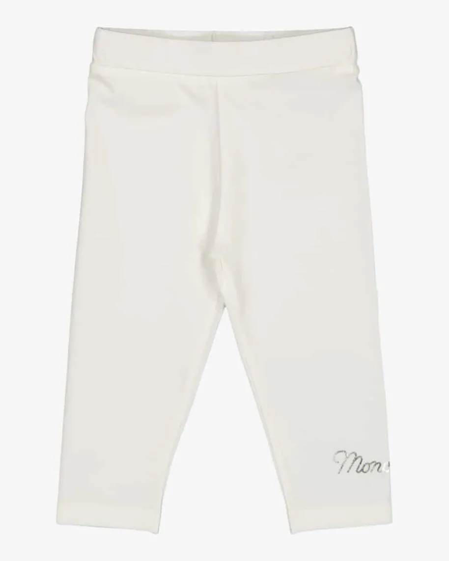 Leggings für Babys von Moncler Enfant in Weiß. Das Modell besticht dank derelastischen Baumwoll-Verarbeitung mit angenehmen Tragemomenten, während dasdezente Logo-Detail das Gesamtbild labeltypisch untermalt.