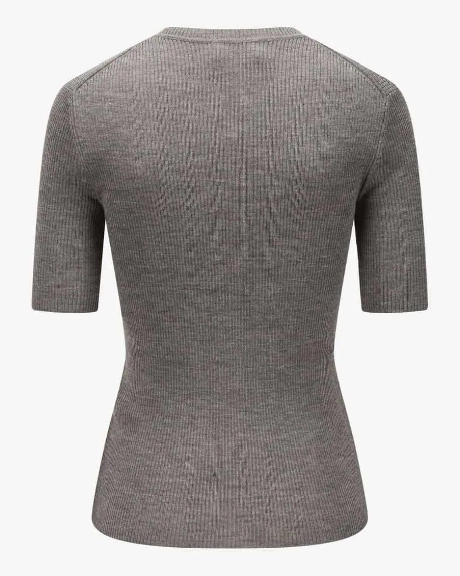 Leila Strickshirt für Damen von Parosh in Taupe. Während die angenehm-leichteWoll- Qualität in elastischer Rippstrick-Aufmachung für einen optimalen Sitzsorgt, avanciert das Modell dank cleanem T-Shirt-Design mit leicht verlängertenkurzen Ärmeln zum perfekten Basic für jeden Tag.