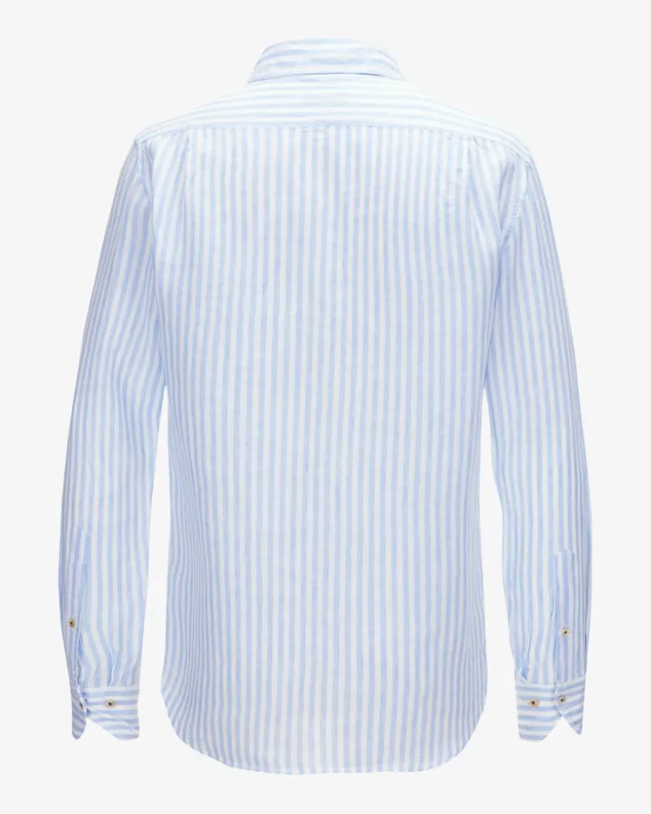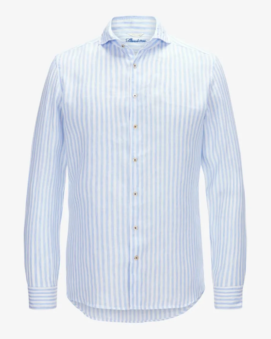 Leinenhemd Fitted Body für Herren von Stenströms in Hellblauund Weiß. Dieluftig-leichteLeinen-Qualität sorgt für einen legeren Stil, während das gestreifte Dessineinen maritimen Look schafft.