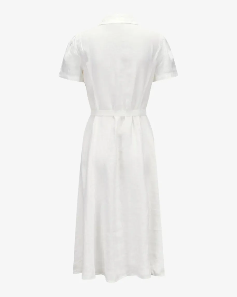 Leinenkleid für Damen von Polo Ralph Lauren in Weiß. Das Modell besticht dankder angenehmen Leinen-Qualität mit kühlenden Eigenschaften für den Sommer,während die klassische Schnittführung einen modisch-legeren Begleiter schafft.