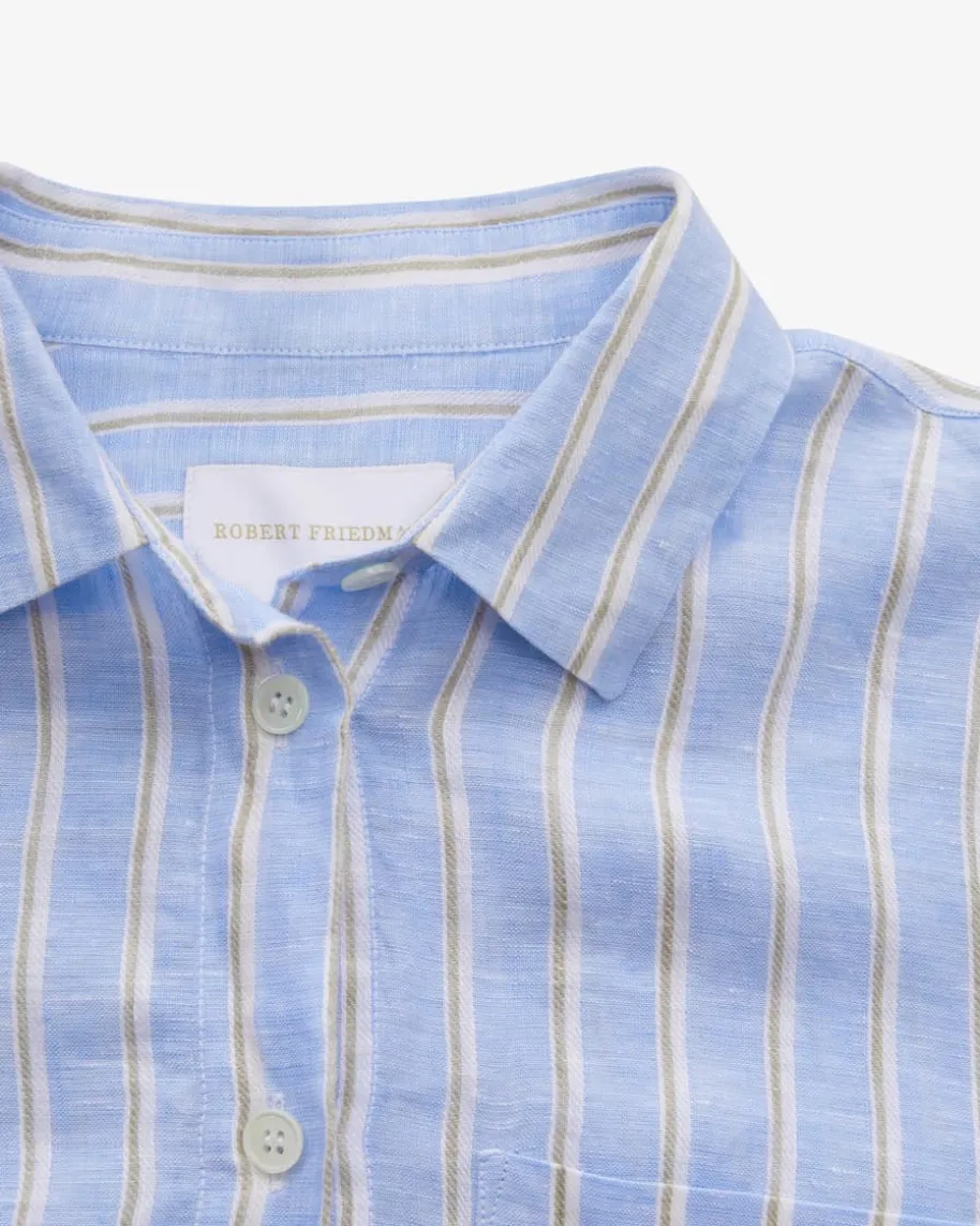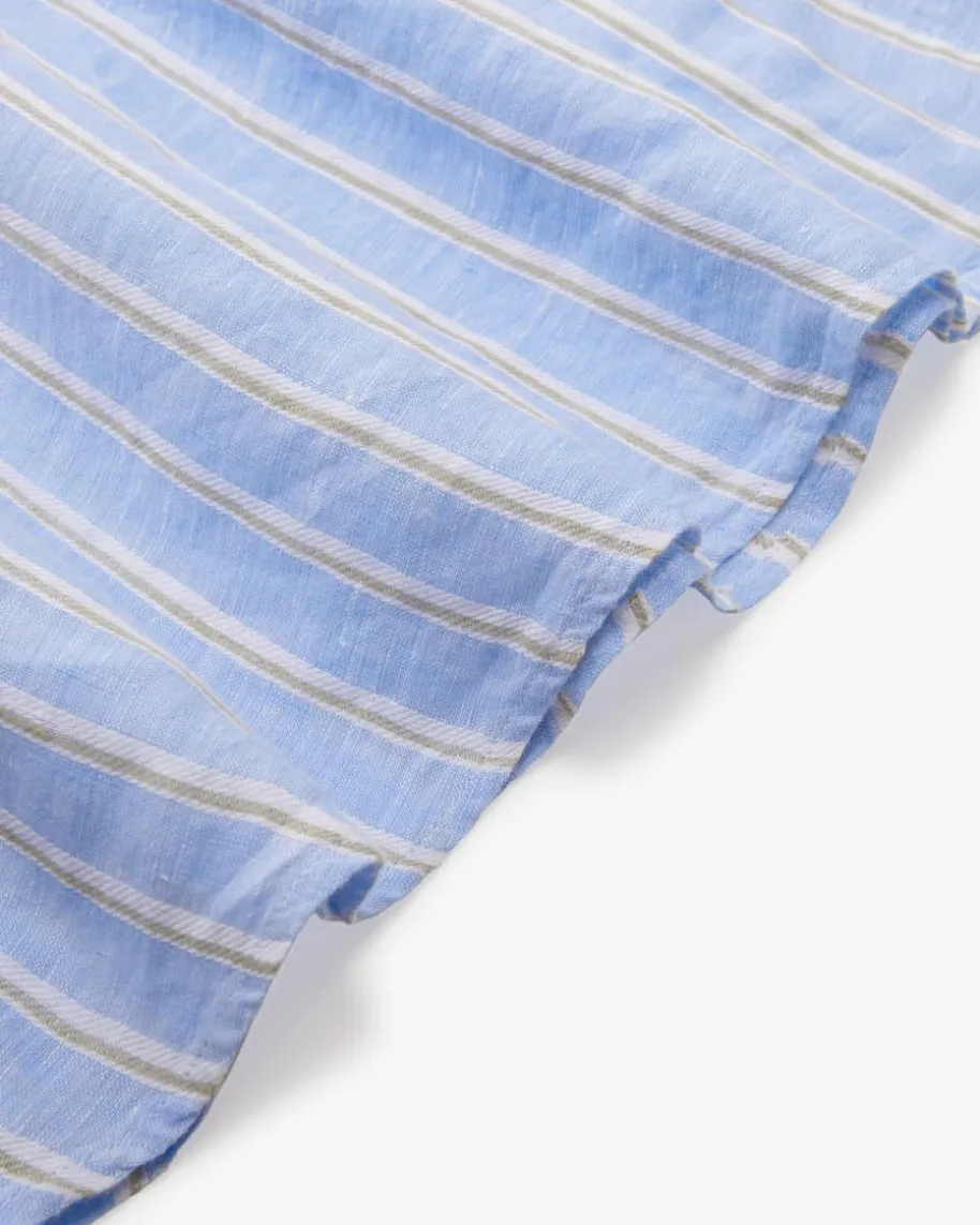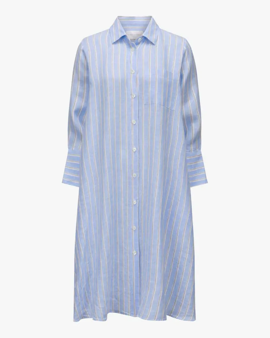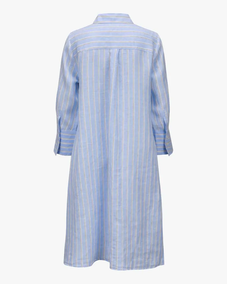 Lena Leinenkleid für Damen von Robert Friedman in Hellblau, Weiß, Sand. DasModellbegeistert sowohl haptisch als auch optisch mit hochwertiger Leinen-Qualität,während die weite Passform legere Akzente setzt. Das Streifenmuster rundet denLook harmonisch ab.