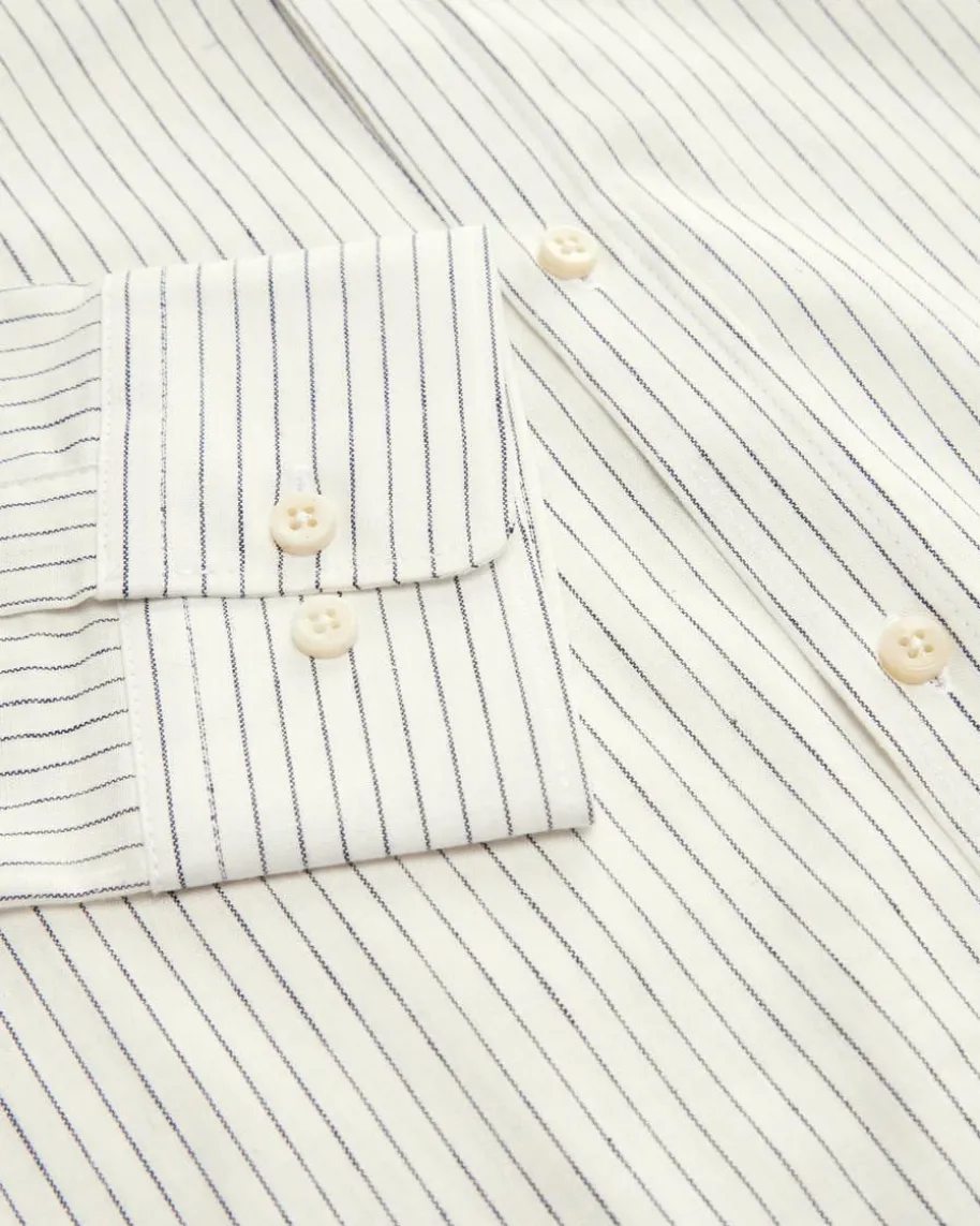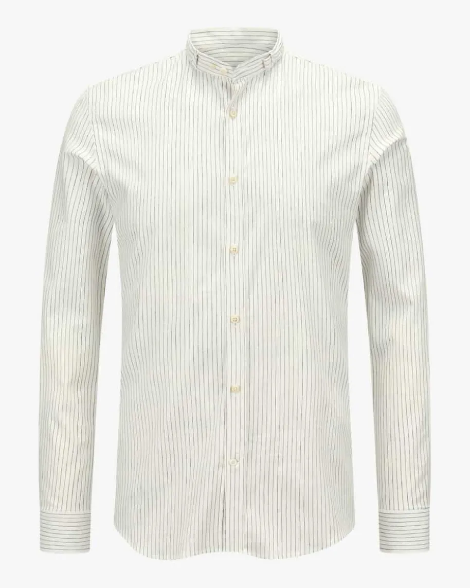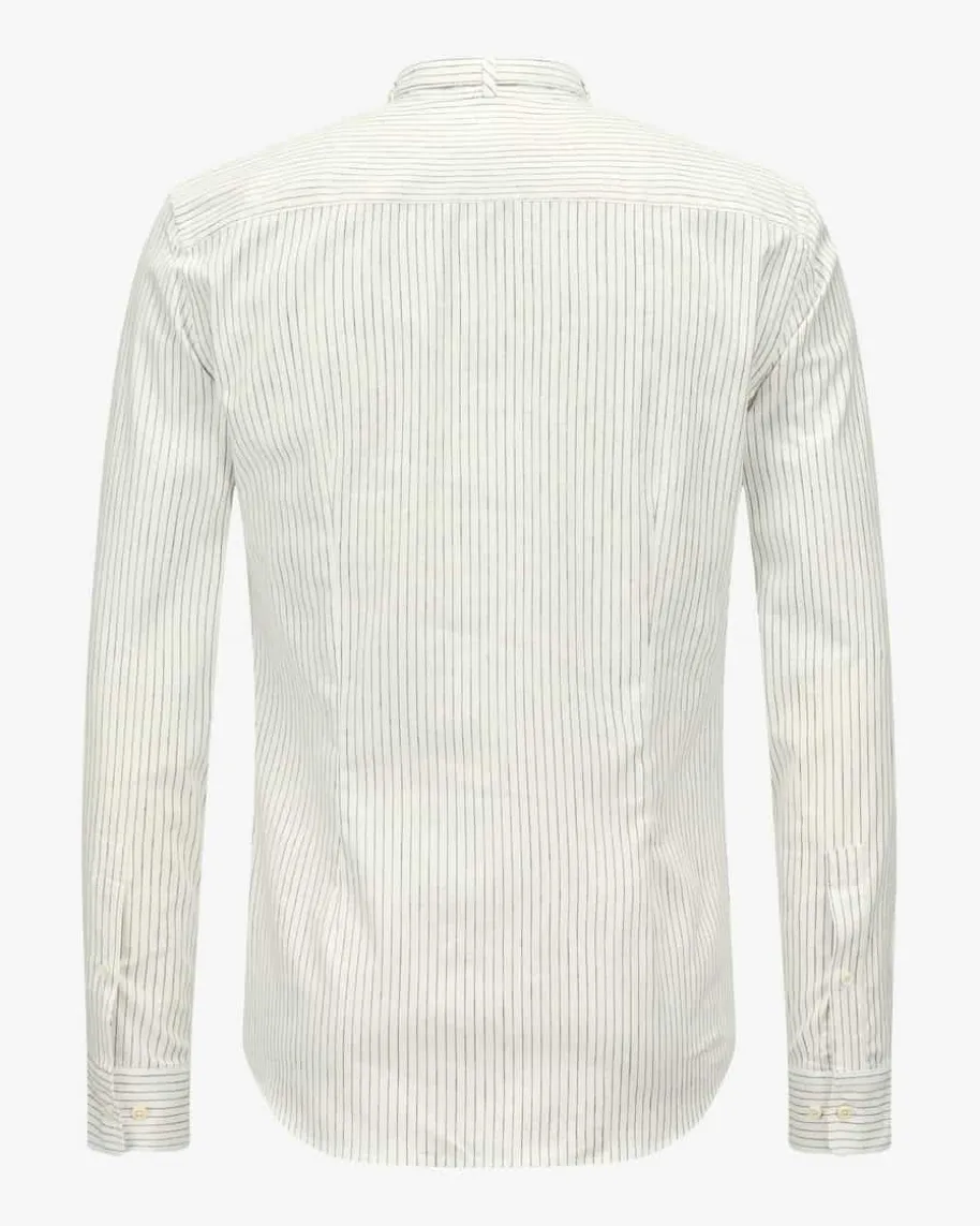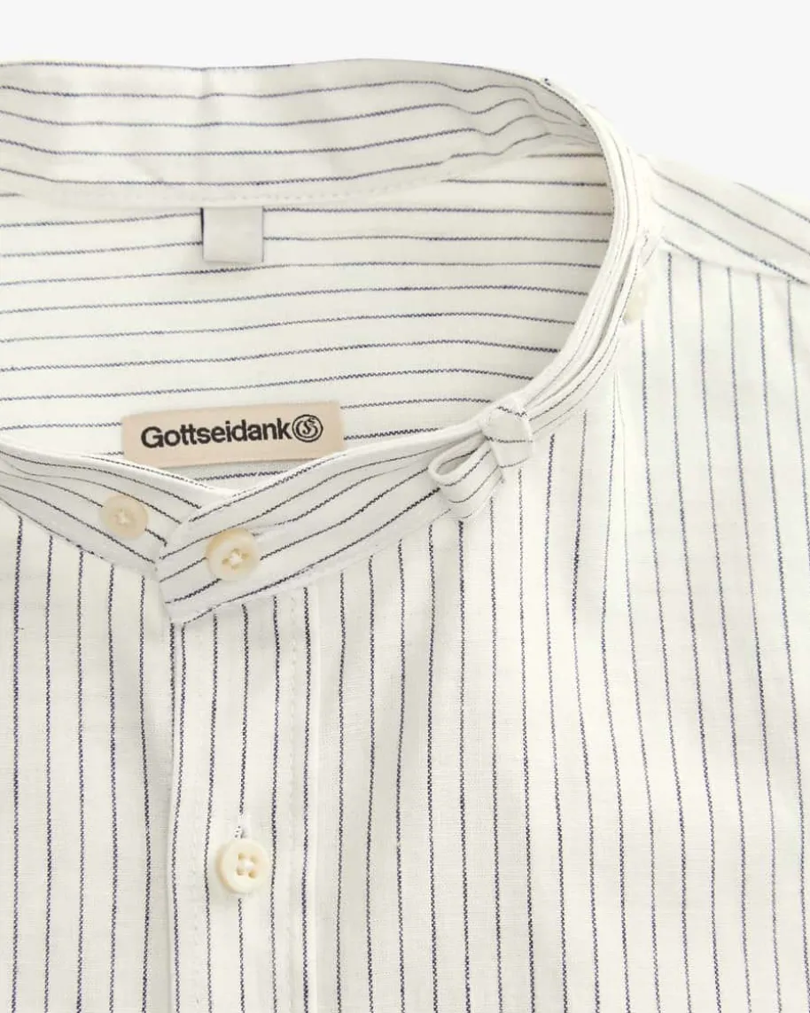Lenz Trachtenhemd für Herren von Gottseidank in Off-White und Navy. HistorischeTracht mit modernem Zeitgeist – Das Modell besticht durch das feine Streifen-Dessin, während der hochwertige Baumwoll-Leinen-Mix für angenehmen Tragekomfortsorgt.