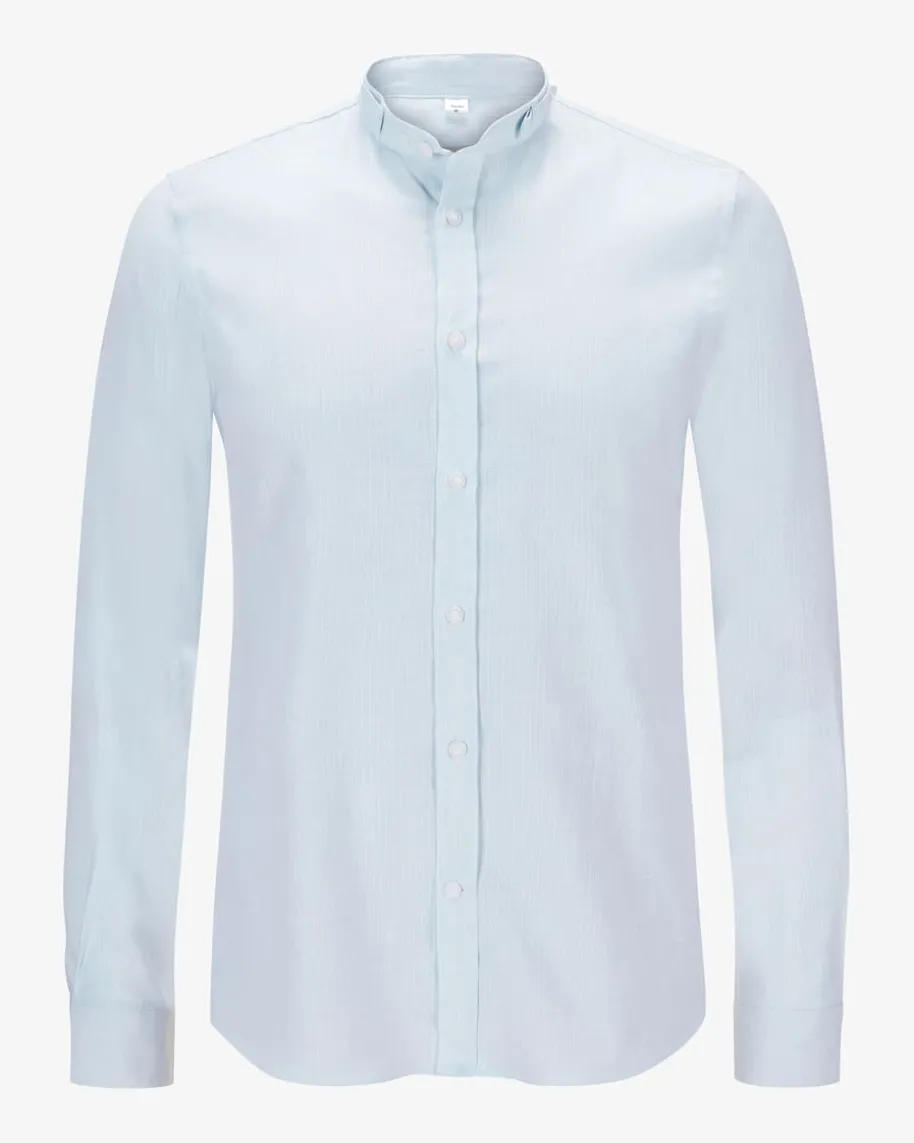 Lenz Trachtenhemd für Herren von Gottseidank in Hellblau und Weiß. HistorischeTracht mit modernem Zeitgeist – Das gerade geschnittene Modell besticht durchdas stilvolle Streifen-Dessin, während der elastische Baumwoll-Mix fürangenehmen Tragekomfort sorgt.
