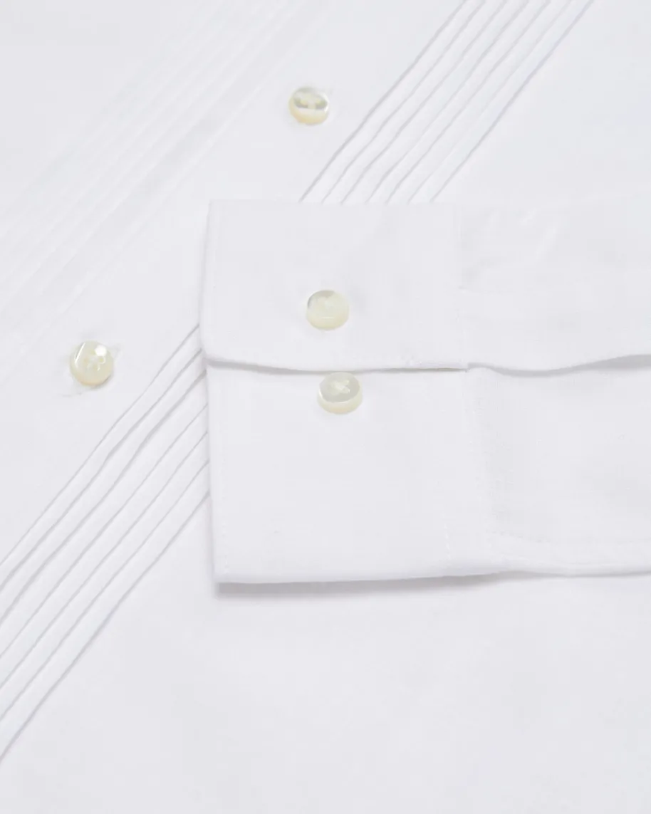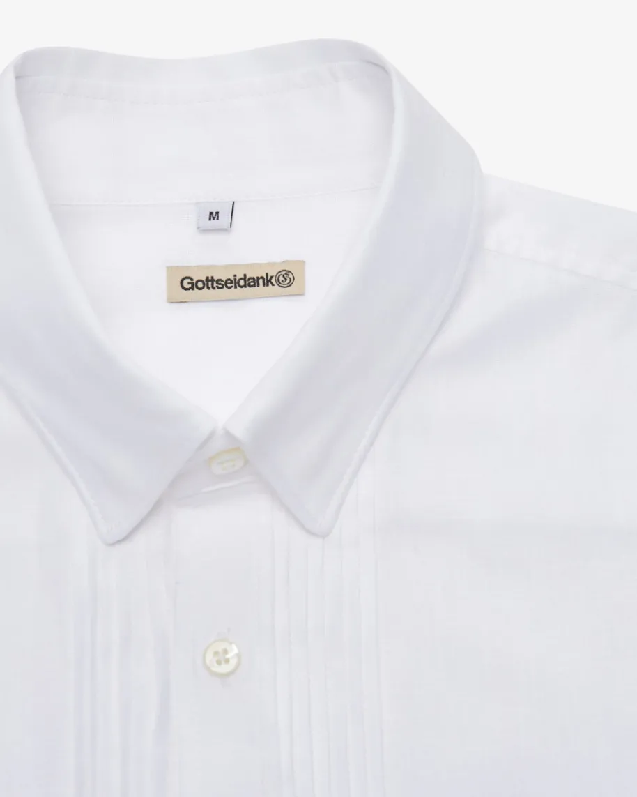 Leo Trachtenhemd für Herren von Gottseidank in Weiß. Das Modell überzeugt mitdem leicht elastischen Baumwoll-Leinen-Mix mit angenehmen Tragemomenten, währendtraditionelle Biesen-Details entlang der Knopfleiste besondere Akzente setzen.