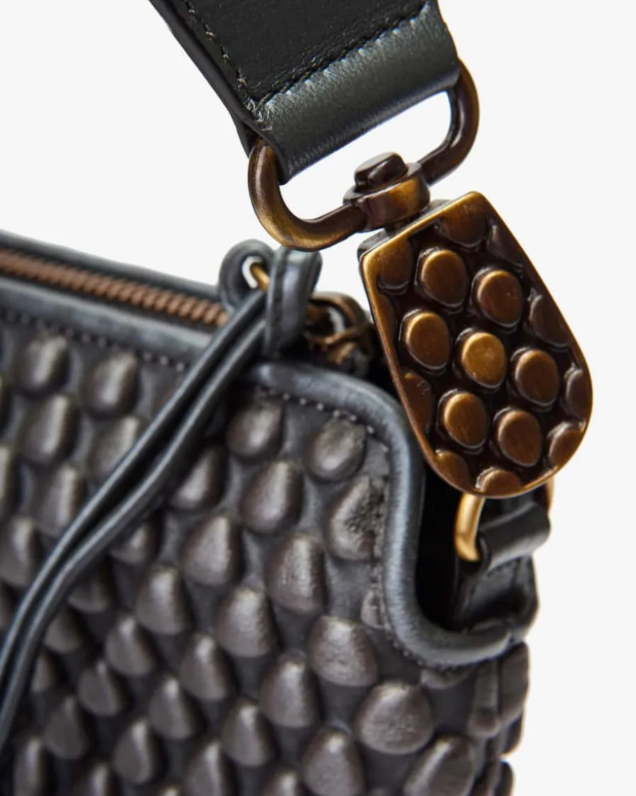 Liberty Umhängetasche für Damen von Tissa Fontaneda in Anthrazit. Das 2010gegründete Label vereint Handwerkliches Können und Liebe zum Detail. Die soforterkennbare „Bubble Bag“ ist zum Markenzeichen der Kollektion Tissa Fontanedageworden. Auch dieses Modell begeistert in charakteristischer Aufmachung mitstrukturierter Optik, während der breite Schulterriemen sportive Akzente setzt.