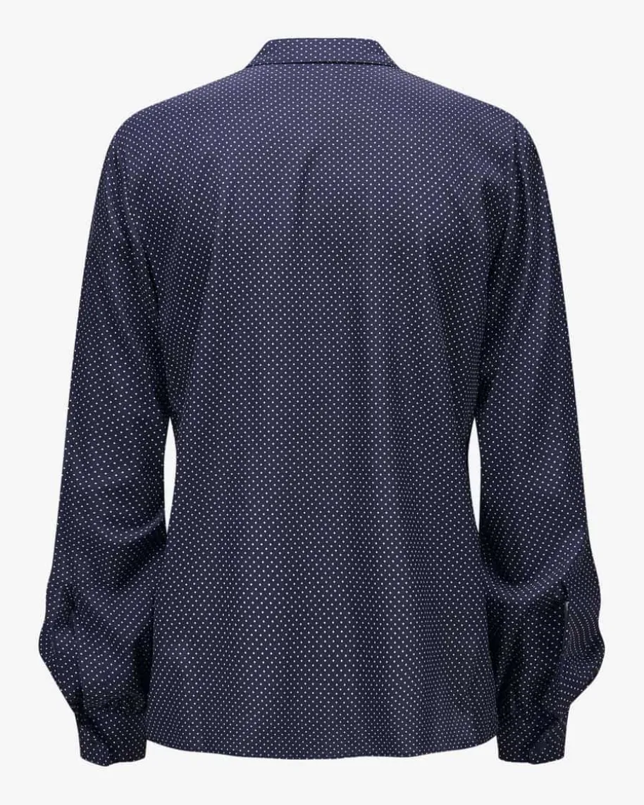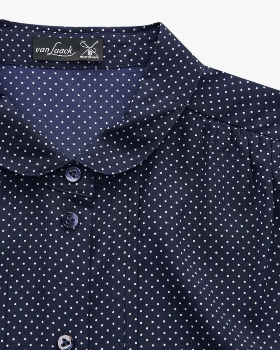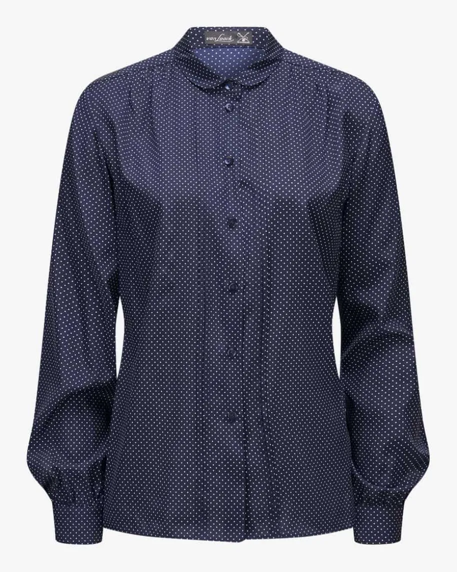 Lilani Seidenbluse für Damen von van Laack in Marine und Weiß. Das gepunkteteModell begeistert mit hochwertigem Seiden-Elasthan-Mix, der für angenehmfließenden Tragekomfort sorgt. Die feminine Silhouette mit dezentem Bubikragenund feinen Biesen rundet den modischen Style harmonisch ab.