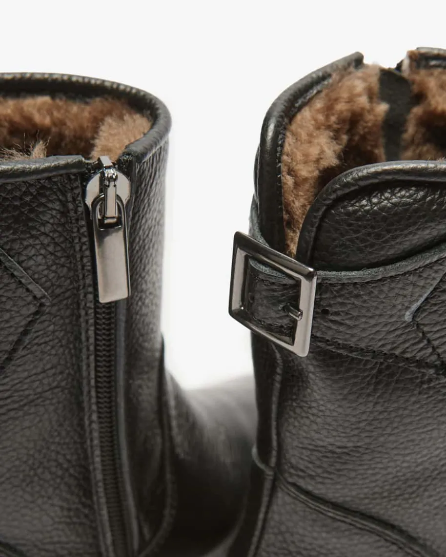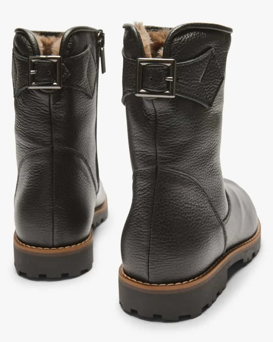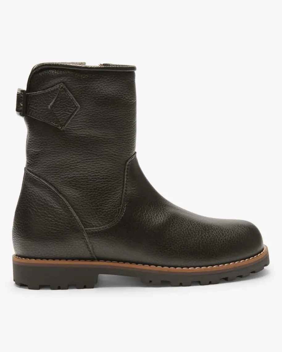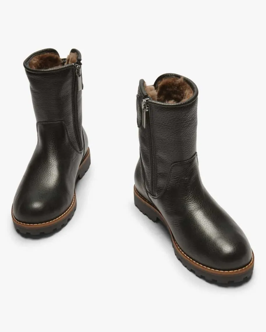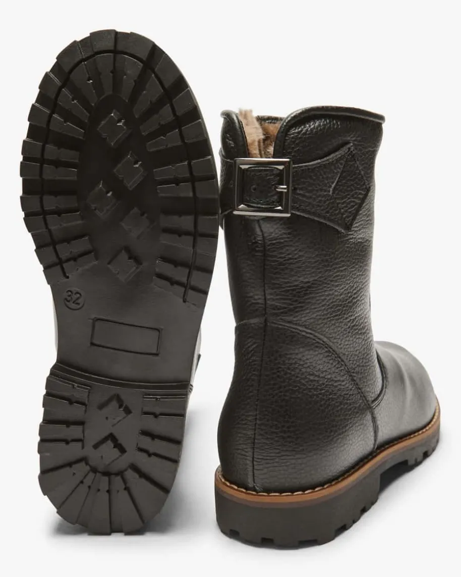 Lizzie Stiefel für Mädchen von LODENFREY in Schwarz. Das Modell begeistert dankder hochwertigen Leder-Verarbeitung und rutschfesten Profilsohle, während dieweiche Fake Fur- Innenseite wärmende Tragemomente verspricht.