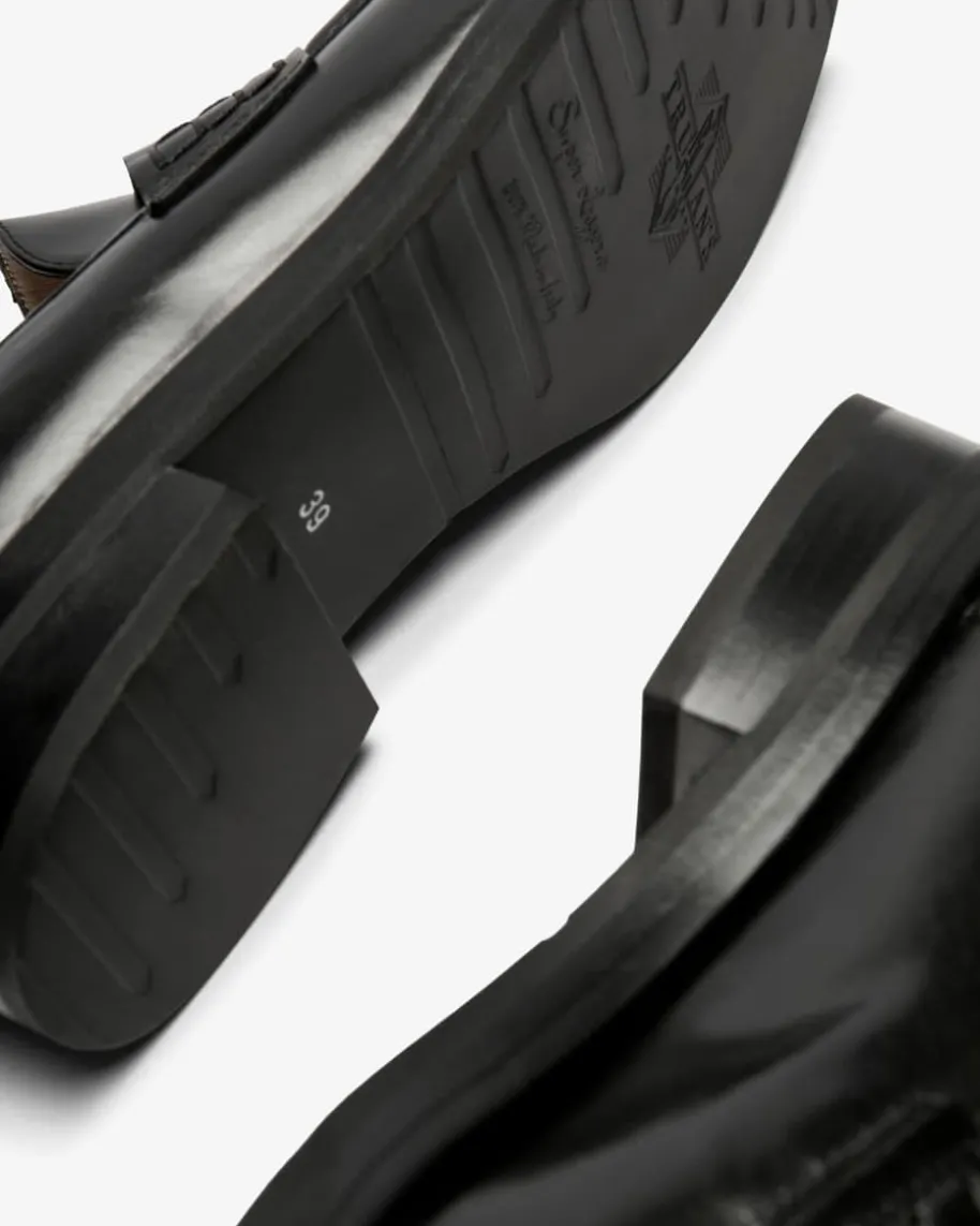 Loafer für Damen von Trumans in Schwarz. Das Modell besticht durch stilvolle undzugleich hochwertige Aufmachung, während die Verwendung von glattem Leder sowieder dezente Blockabsatz denedlen Charakter gekonnt unterstreichen.