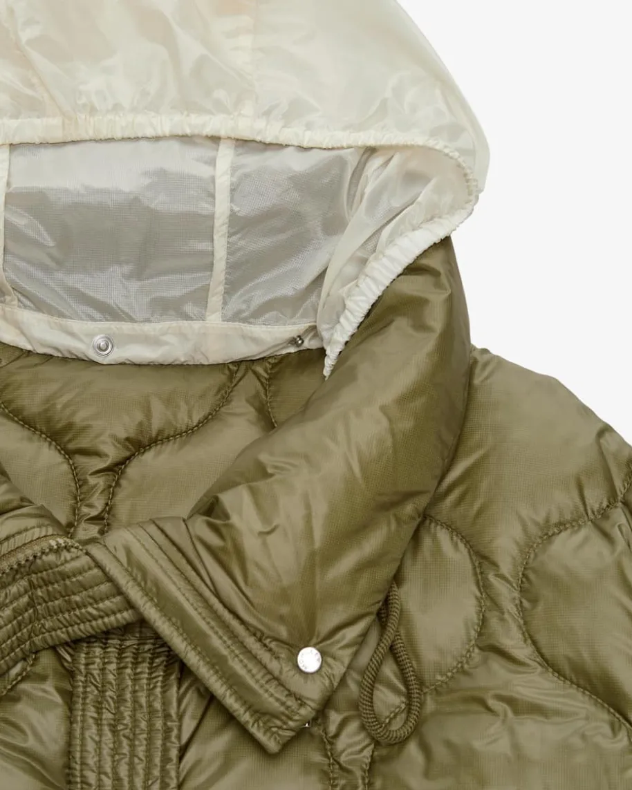 Lombi Daunenparka für Damen von Moncler in Oliv. Denkt man an hochwertige, warmeDaunenjacken, kommt einem unweigerlich das italienische Traditionslabel Monclerin den Sinn. Auch mit diesem Modell präsentiert das Label dank der hochwertigenDaunen-Feder-Füllung einen optimalen Begleiter für vielseitige Winter-Looks,welcher durch das voluminöse Steppmuster in Rautenform und die labeltypischeLogo-Applikation in Szene gesetzt wird.