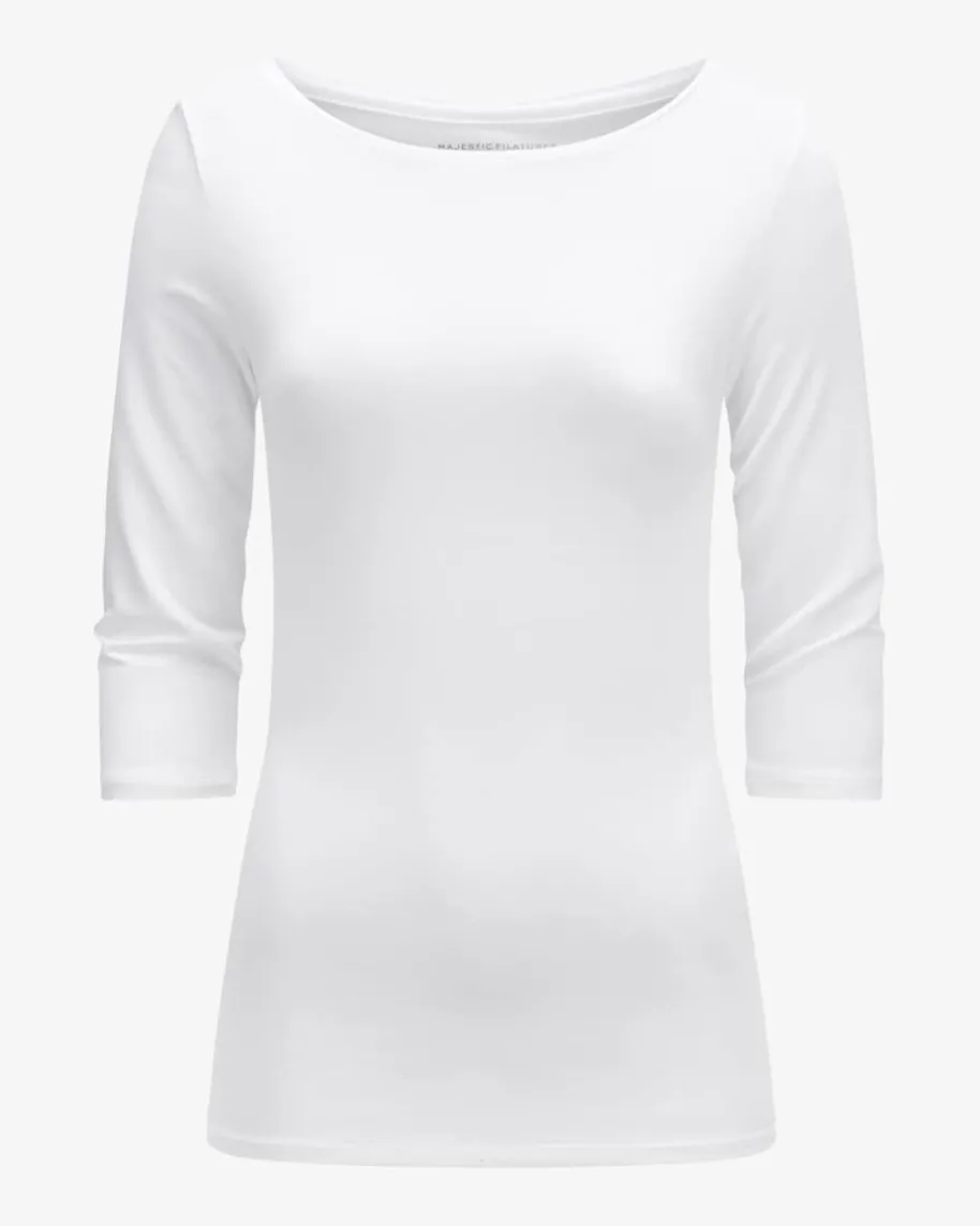Longsleeve für Damen von Majestic Filatures in Weiß. Ein perfektes Basic – Dasschlichte Modell überzeugt dank dem elastischen Material-Mix und der angenehmenSoft-Touch-Qualität mit hohem Tragekomfort.