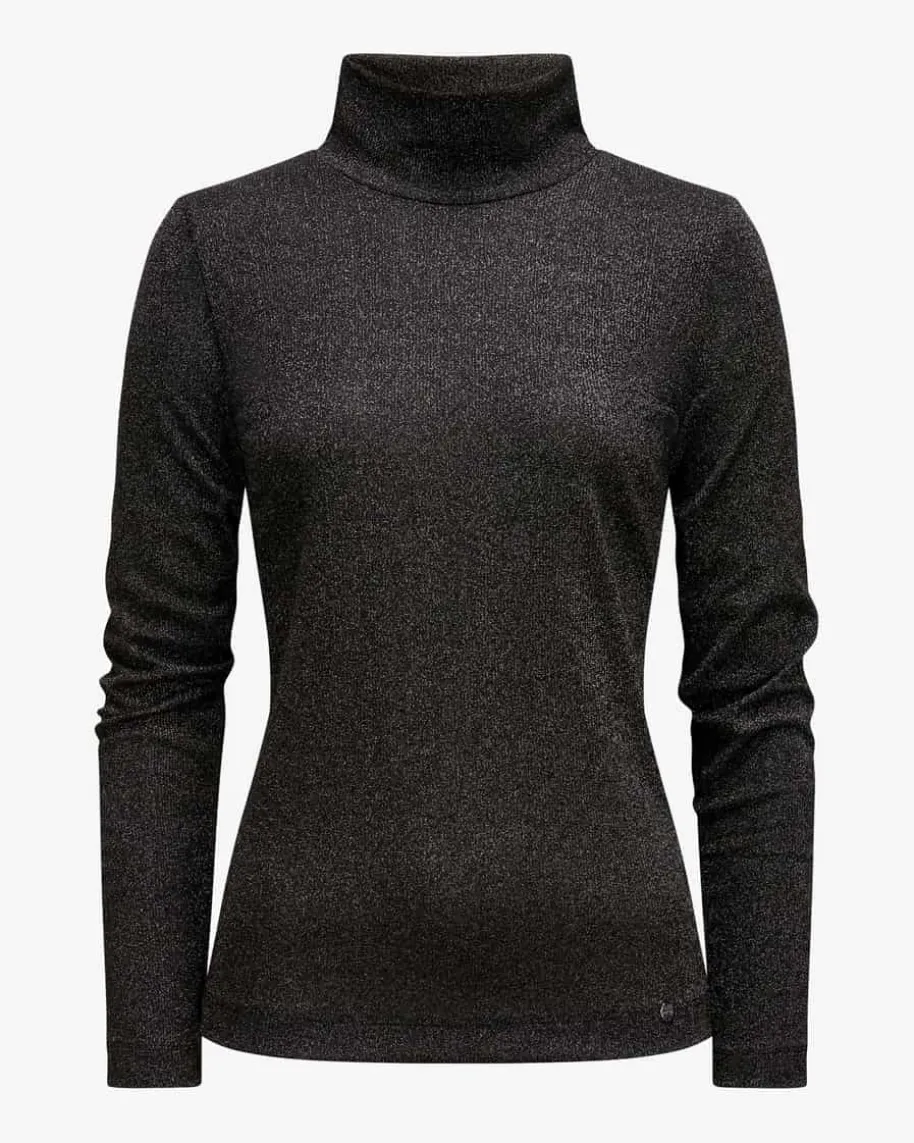 Longsleeve für Damen von Marc Cain in Schwarz. Das Modell präsentiert sich infemininer Silhouette, während die Rippstrick-Struktur in Kombination mit denmetallisierten Fasern sowohl einen sportiven als auch eleganten Favoritenversprechen.