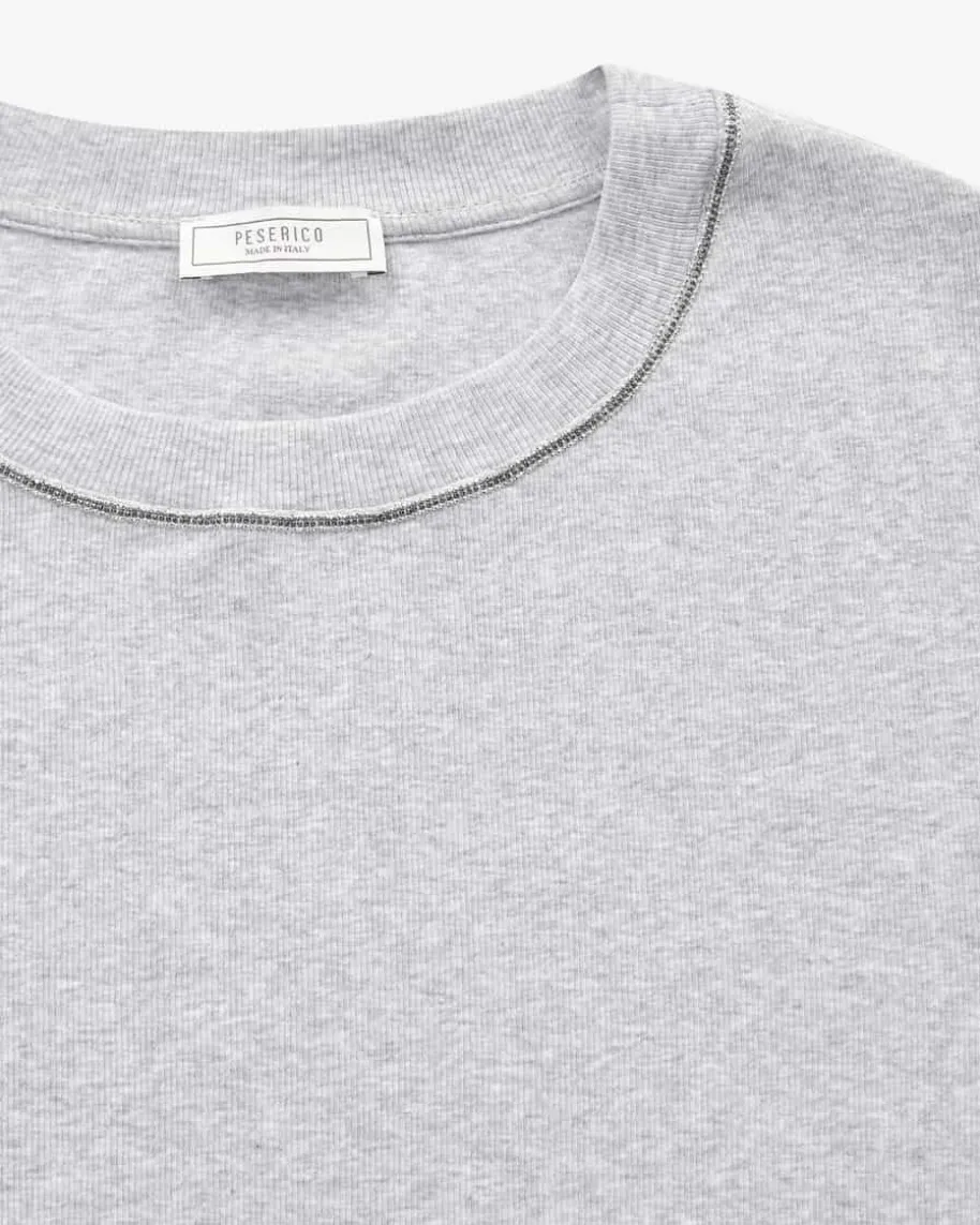 Longsleeve für Damen von Peserico in Hellgrau. Dank der dezenten Schmuckstein-Applikation am Rundhals-Ausschnitt avanciert das Modell zum modischen Blickfang,während die schlichte Schnittführung einen vielseitigen Alltagsbegleiterschafft.