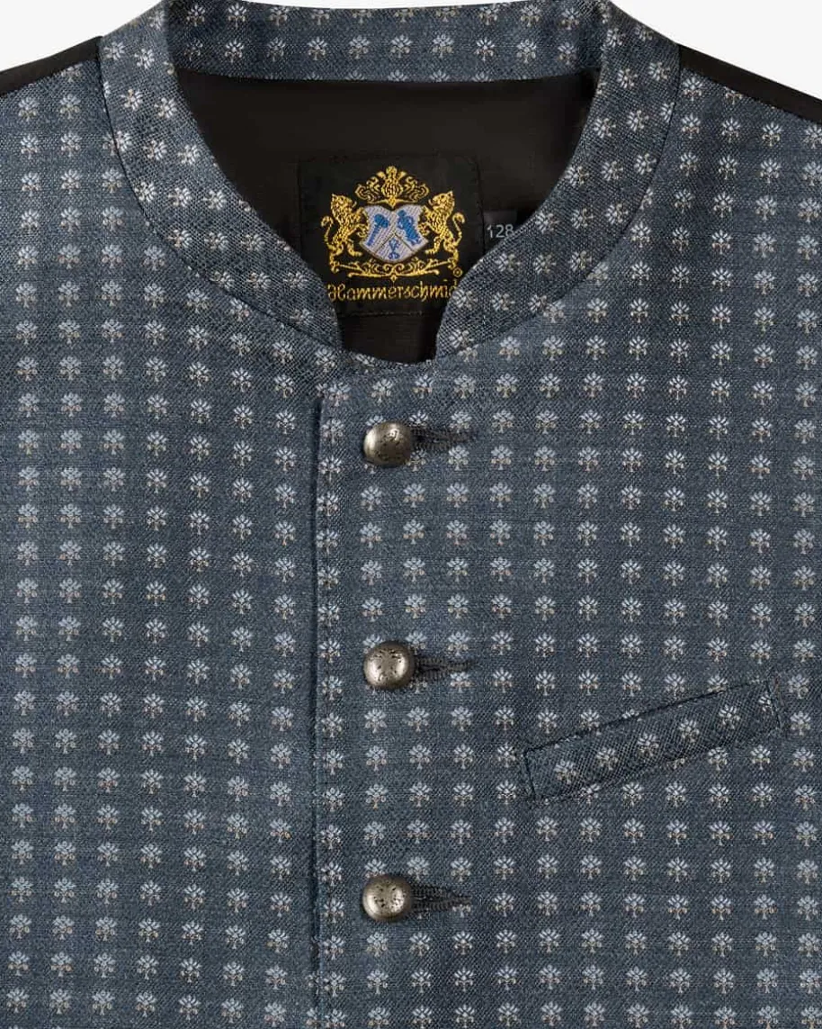 Luca Trachtenweste für Jungen von Hammerschmid in Dunkelblau, Hellblau undSchwarz. Das Modell mit dezent changierender Front überzeugt durch dietraditionelle Aufmachung mit klassischen Details und ergänzt Trachten-Looks fürdie Kleinen stilvoll.