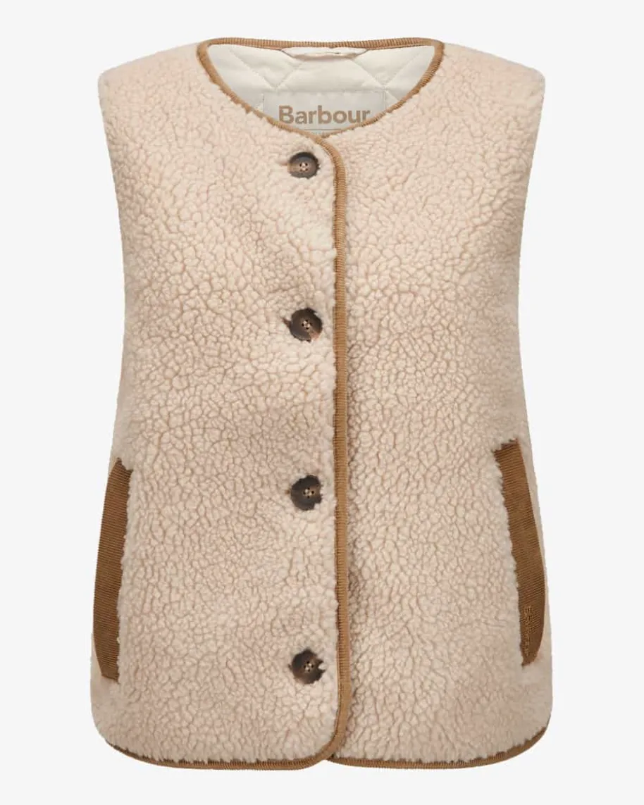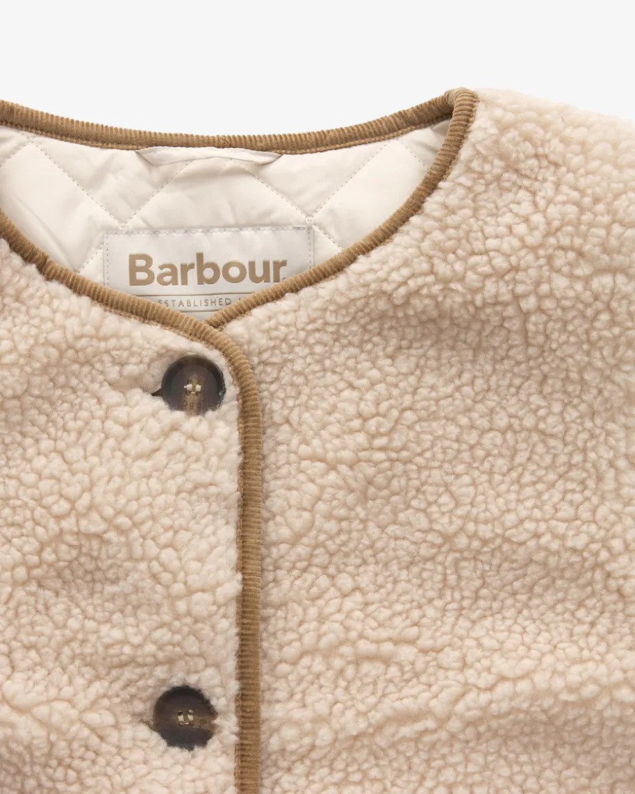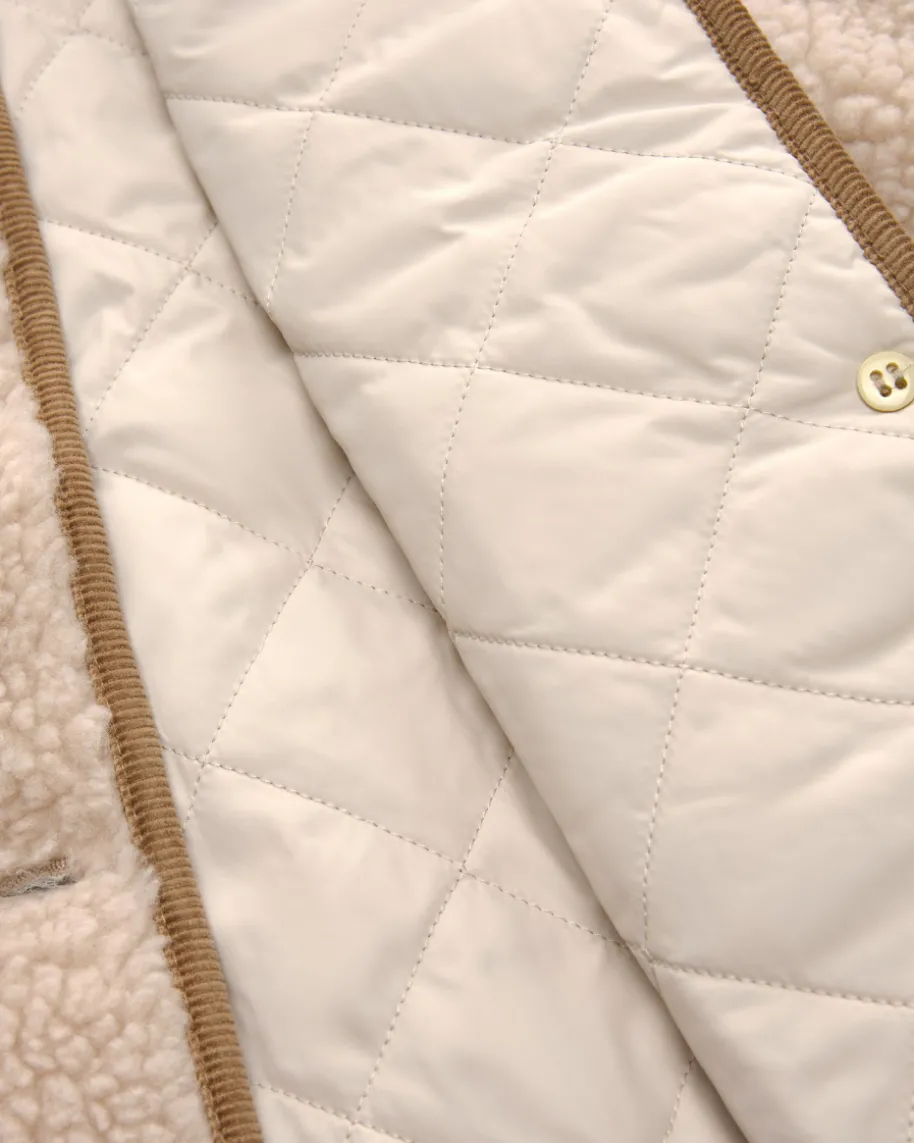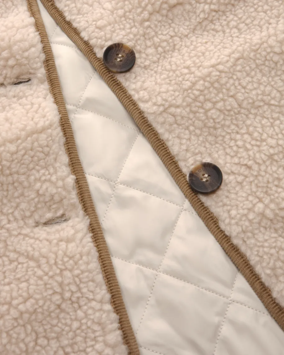 Luciana Weste für Damen von Barbour in Creme. Das 1894 gegründete britischeTraditionshaus ist weltberühmt für gewachste Outdoorjacken mit Heritage-Flair.Die modische Teddyfell-Optik sowie die gesteppte Innenseite schaffen einenstilvollen Begleiter mit weichem Griff für die Übergangszeit, während diedezenten Cord-Details eine sportive Note verleihen.