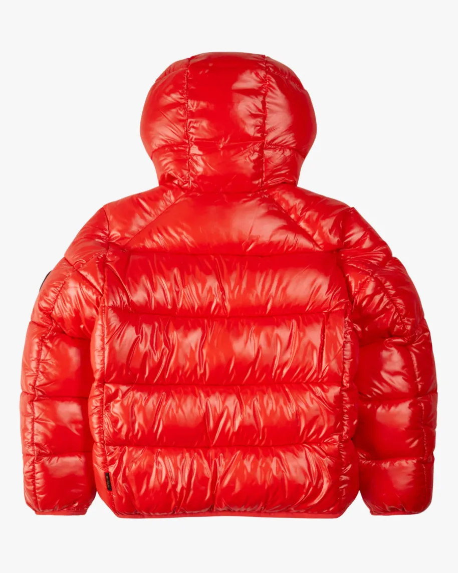 Luck Jacke für Jungen von Save the Duck in Rot. Das nachhaltige Modellbegeistert dank der funktionalen Eigenschaften und sorgt so für optimalen Schutzvor Wind und Wetter, während der kontrastierende Logo-Schriftzug in der Kapuzesportive Akzente setzt.