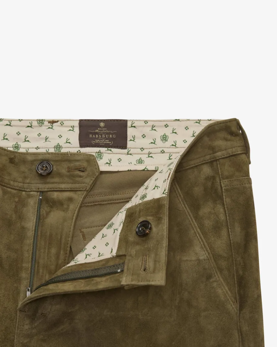 Ludwig Lederhose für Herren von Habsburg in Oliv. Aus hochwertigemLammleder und mit zulaufendem Schnitt begeistert das besonders elastische Modelldes Traditionslabels. Der Bund ist mit einem Zip-Fly-Verschluss undGürtelschlaufen versehen, während durch die Taschen für eine legere Note gesorgtwird. Das modische Innenfutter sowie die natürliche Farbgebung ergänzen dasDesign gekonnt.