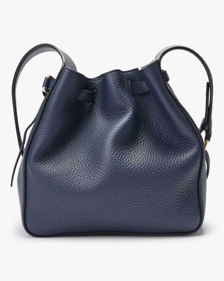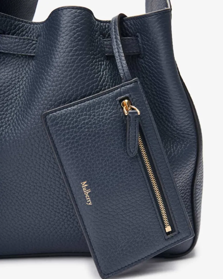 Lyra Small Belted Bucket Schultertasche für Damen von Mulberry in Navy. Einzeitlos-moderner Klassiker – Während das hochwertig genarbte Leder ein edlesGesamtbild kreiert, können Sie durch die Beutel-Form mit zwei verstellbarenRiemen und goldfarbenen Dornschließen die Tasche ideal Ihren Bedürfnissenanpassen.